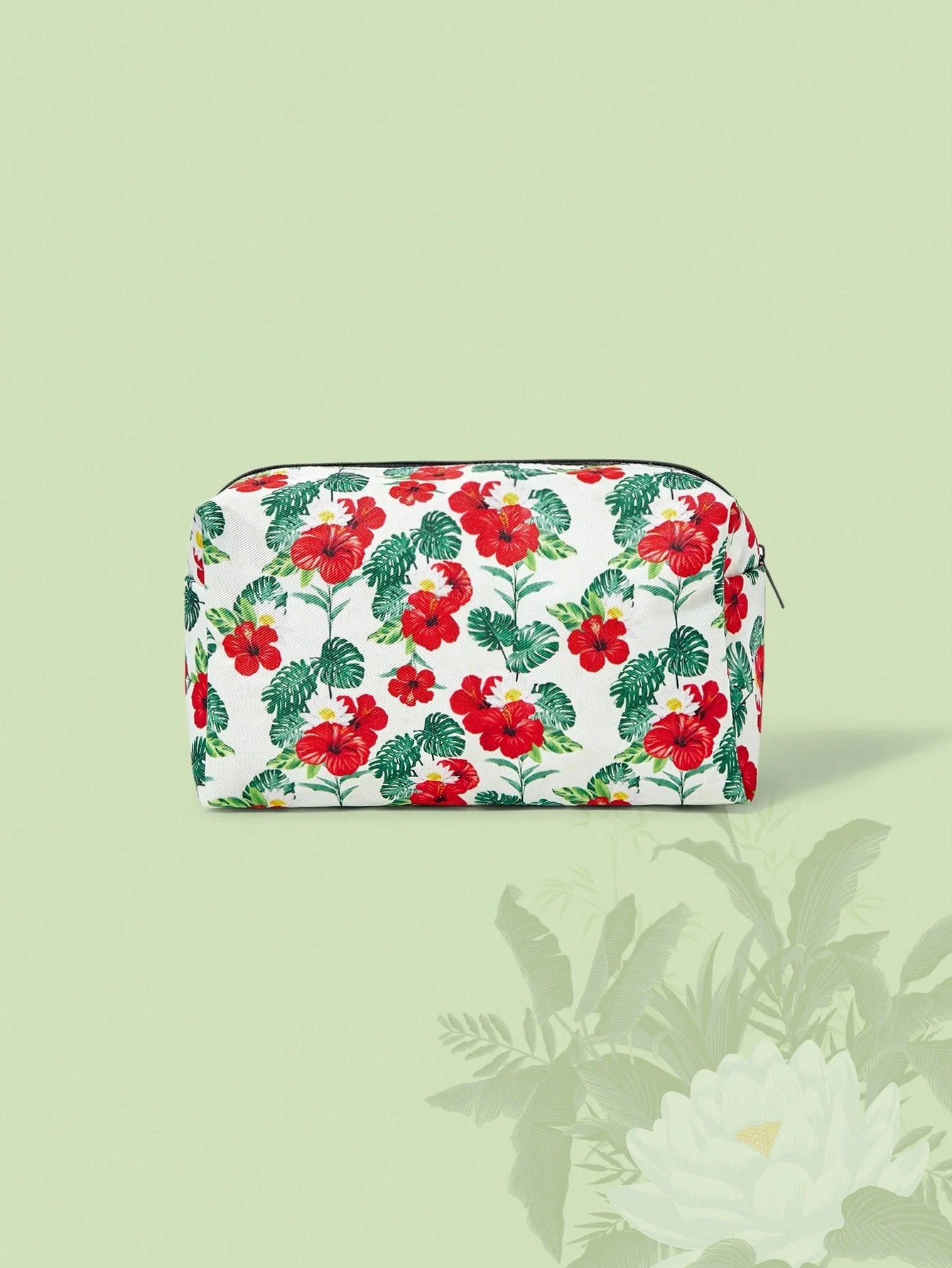 The White Lotus 1pc Flower Pattern Zipper Cosmetic Bag, Fashion Makeup Pouch