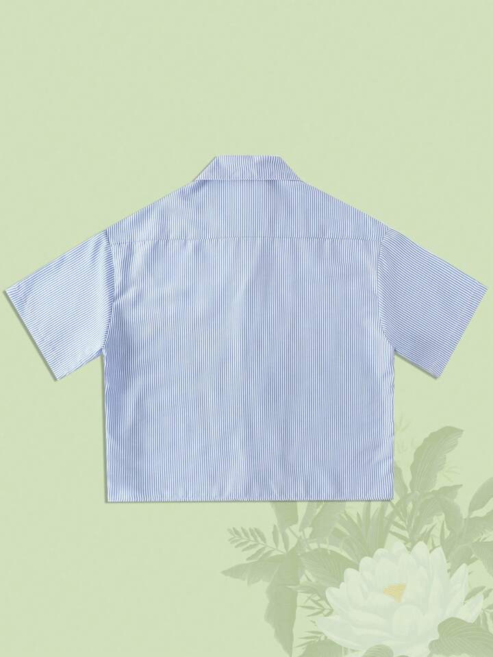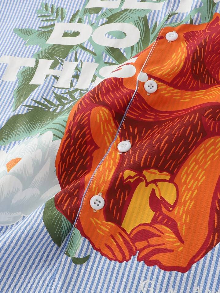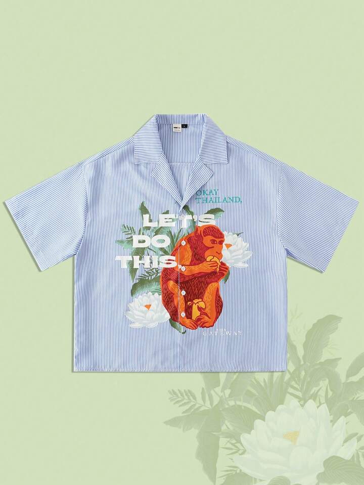 The White Lotus Men's Casual Loose Fit Tropical Monkey & Striped Pattern Lapel Collar Drop Shoulder Summer Resort Shirt