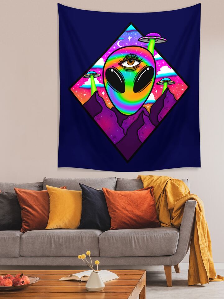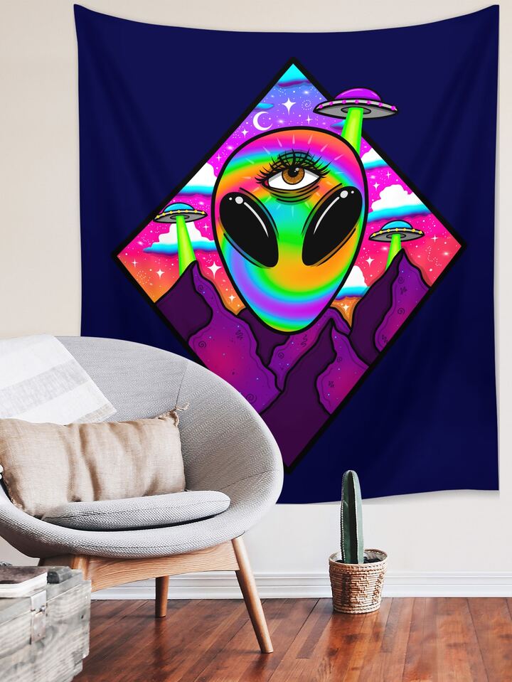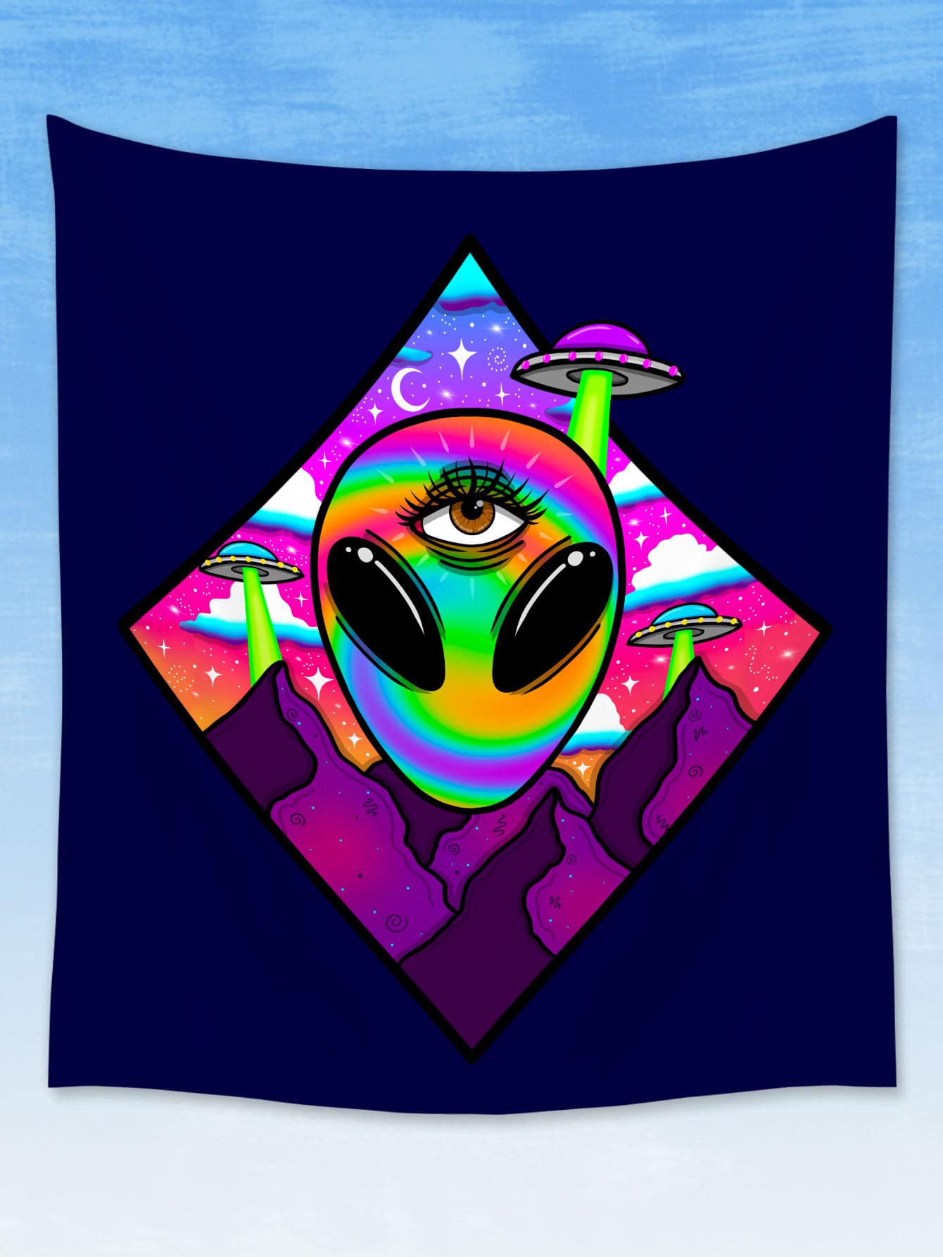 ThisUniqueVibe Mountain & Alien Print Tapestry