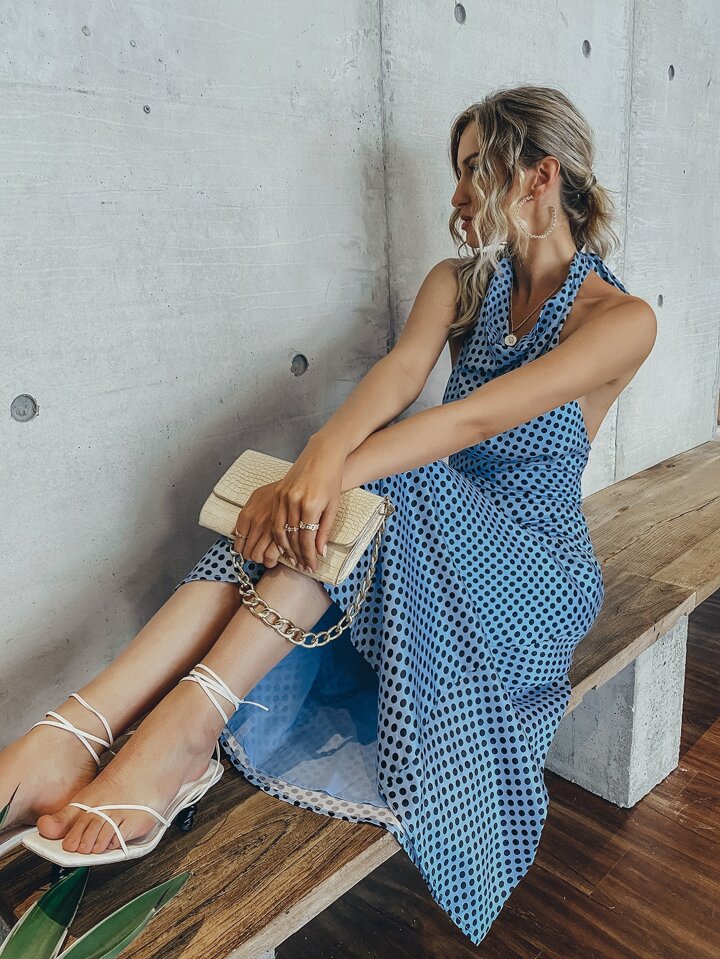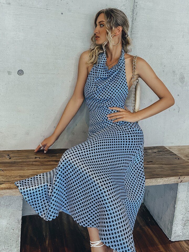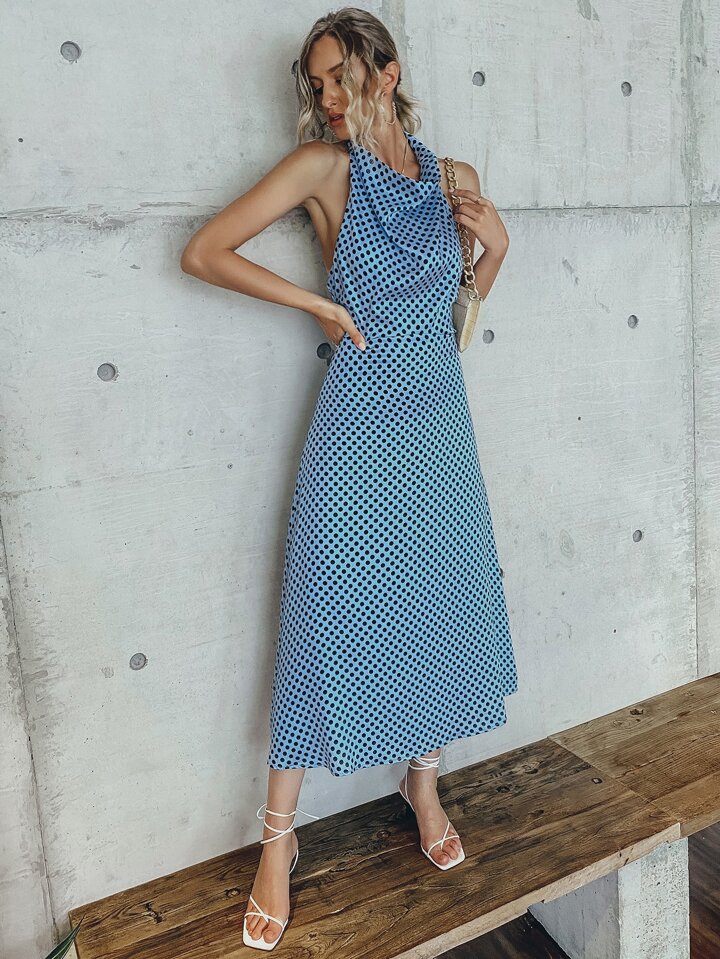 Tie Back Polka Dot Halter Dress