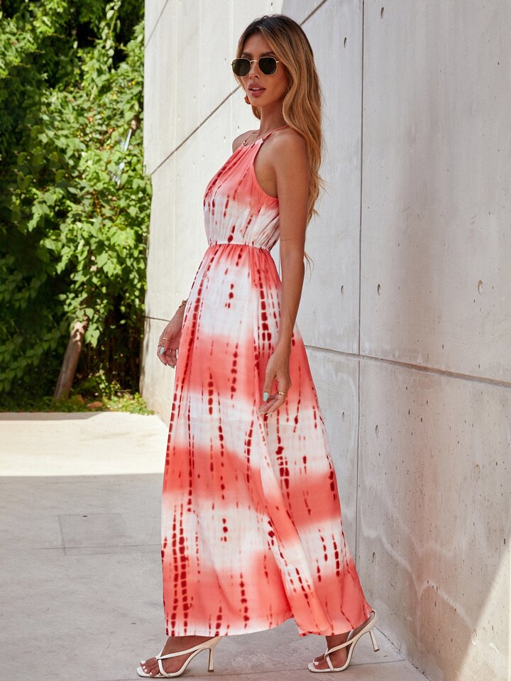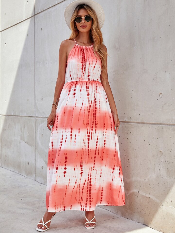 Tie Back Tie Dye Halter Dress