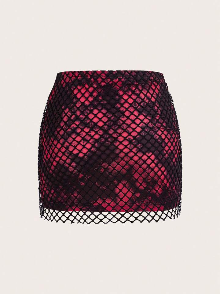 Tie Dye Print Mesh Bodycon Skirt Without Belt
