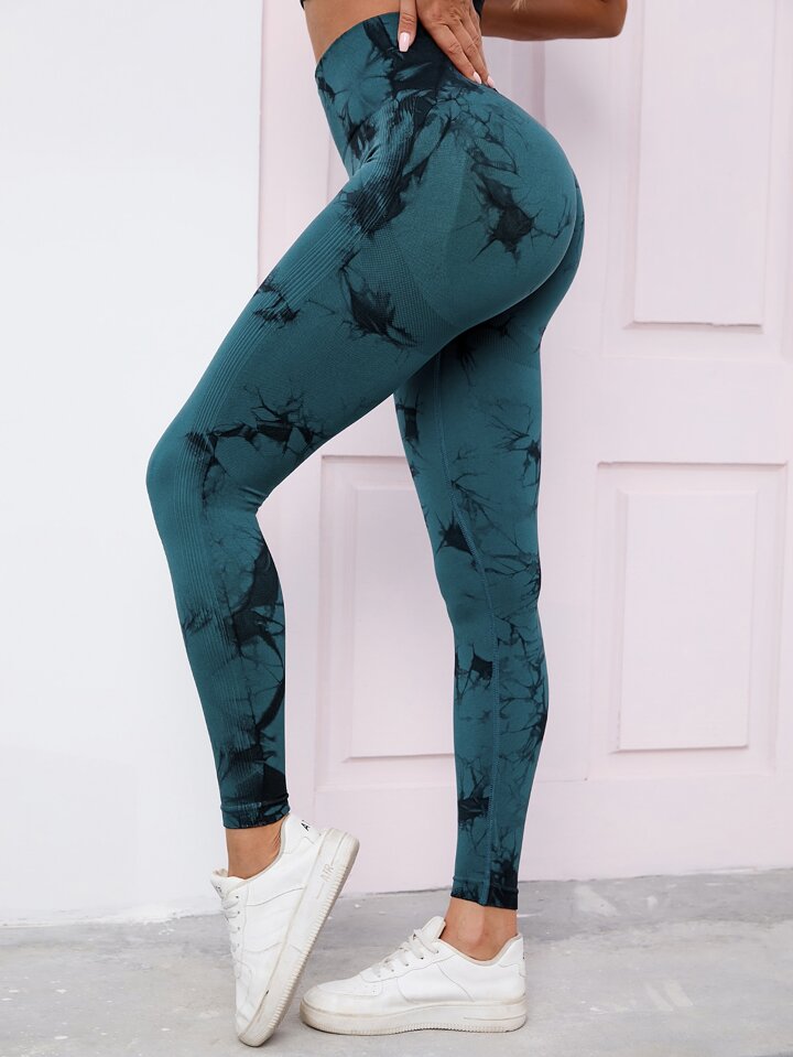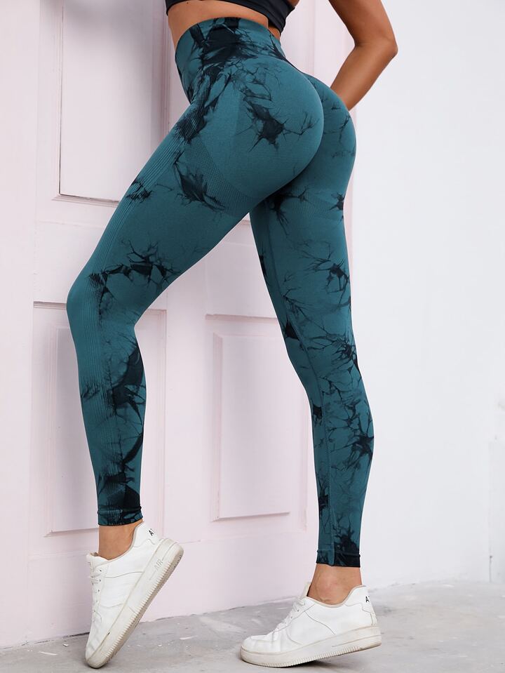 Tie-Dye Seamless Highly Elastic Sports Leggings Sport Studio High Waisted Seamless Slim Leggings For Women - Resilient Soft Touch Breathable 4-Way Stretch Legging For Running Cycling Yoga Pickleball Exercise Casual
