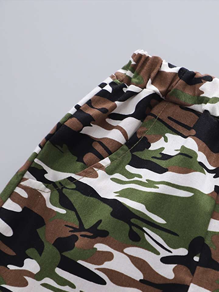 Toddler Boys Camo And Letter Graphic Tee With Shorts