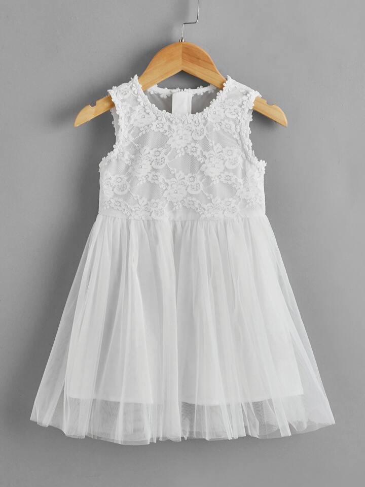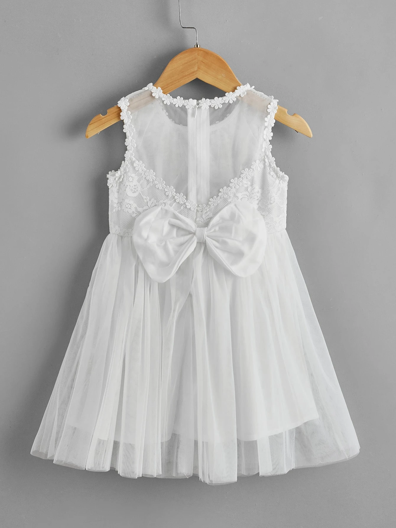 Toddler Girls Contrast Lace Big Bow Back Dress