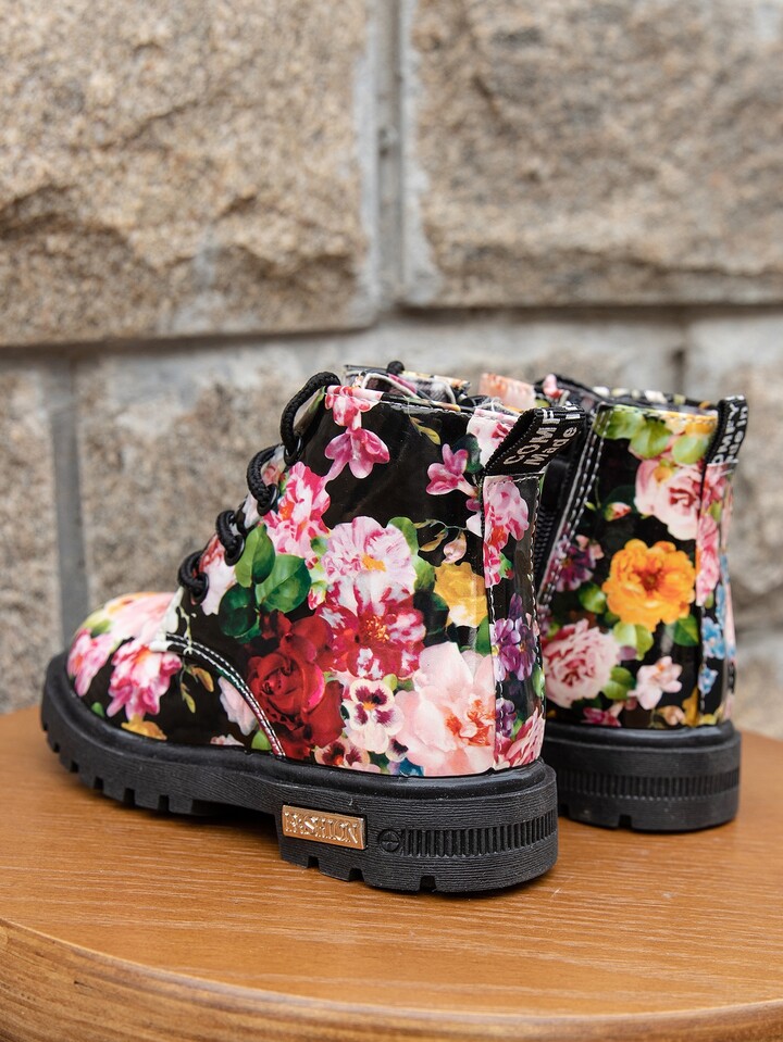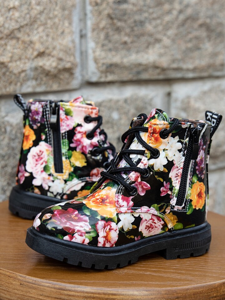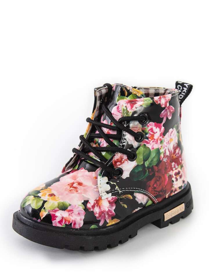 Toddler Girls Flower Print Combat Boots