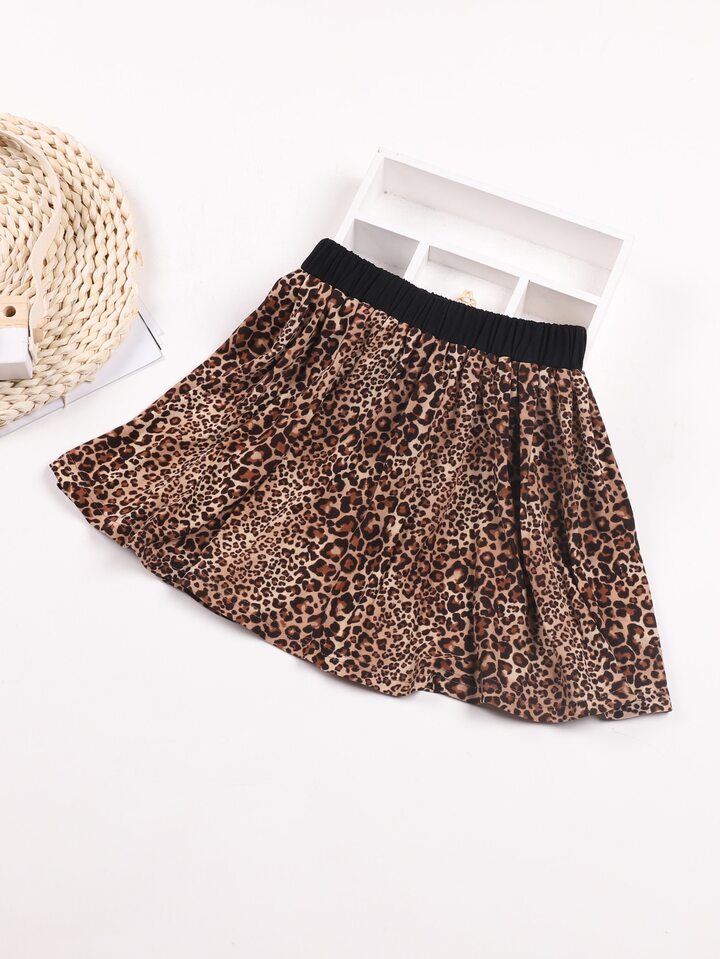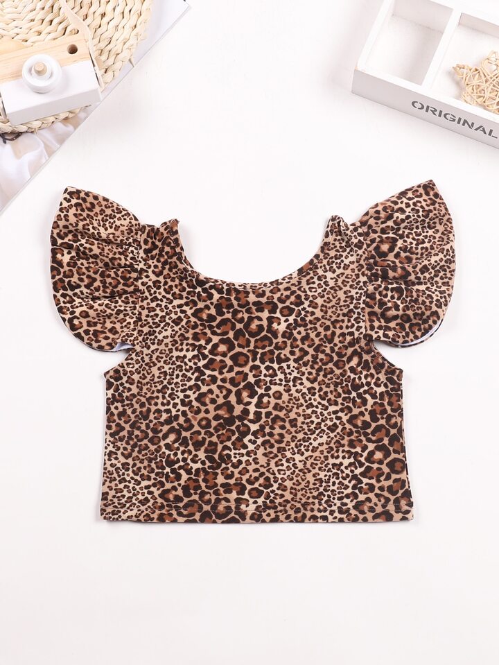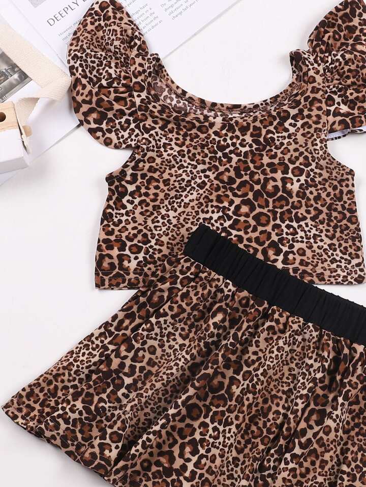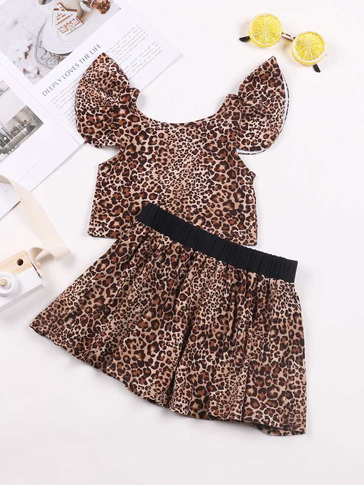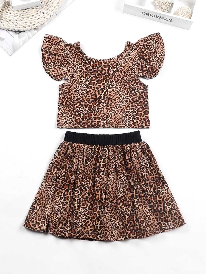Toddler Girls Leopard Print Ruffle Sleeve Top & Skirt