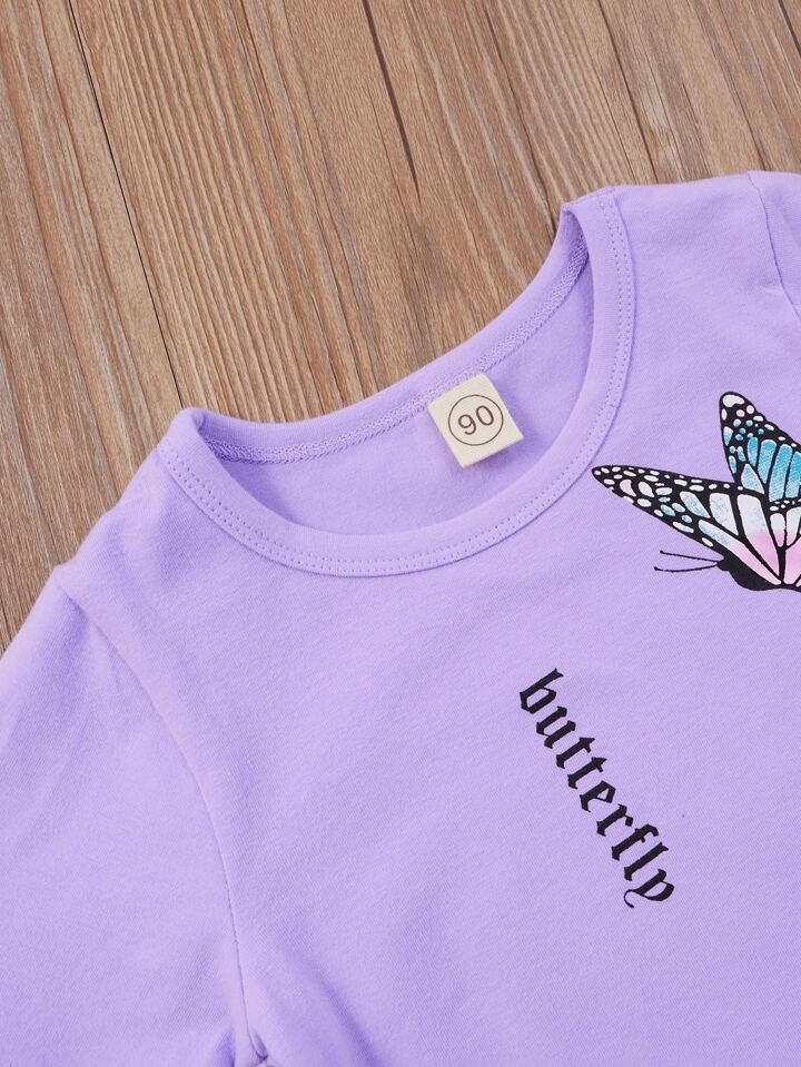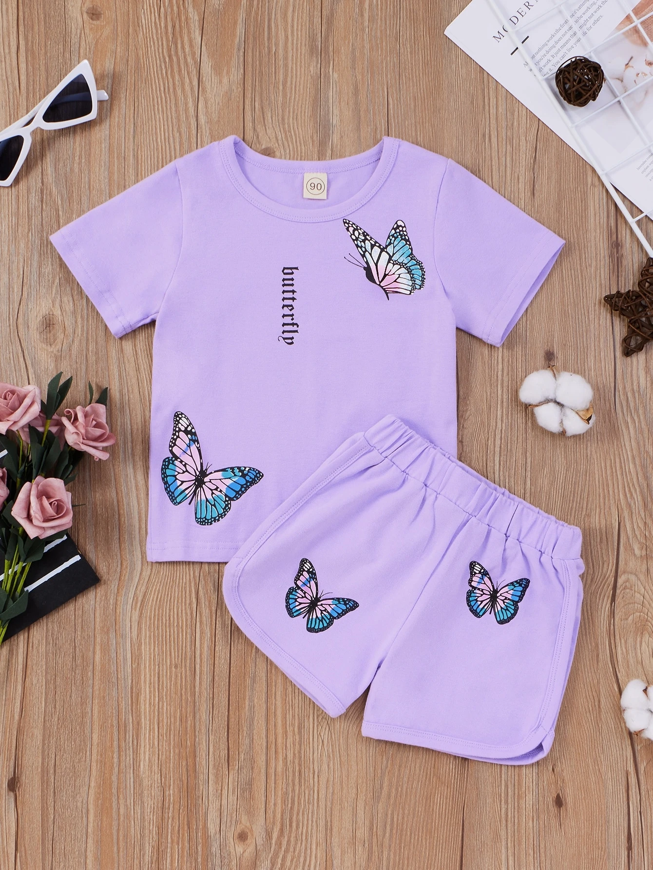 Toddler Girls Letter And Butterfly Print Tee & Shorts