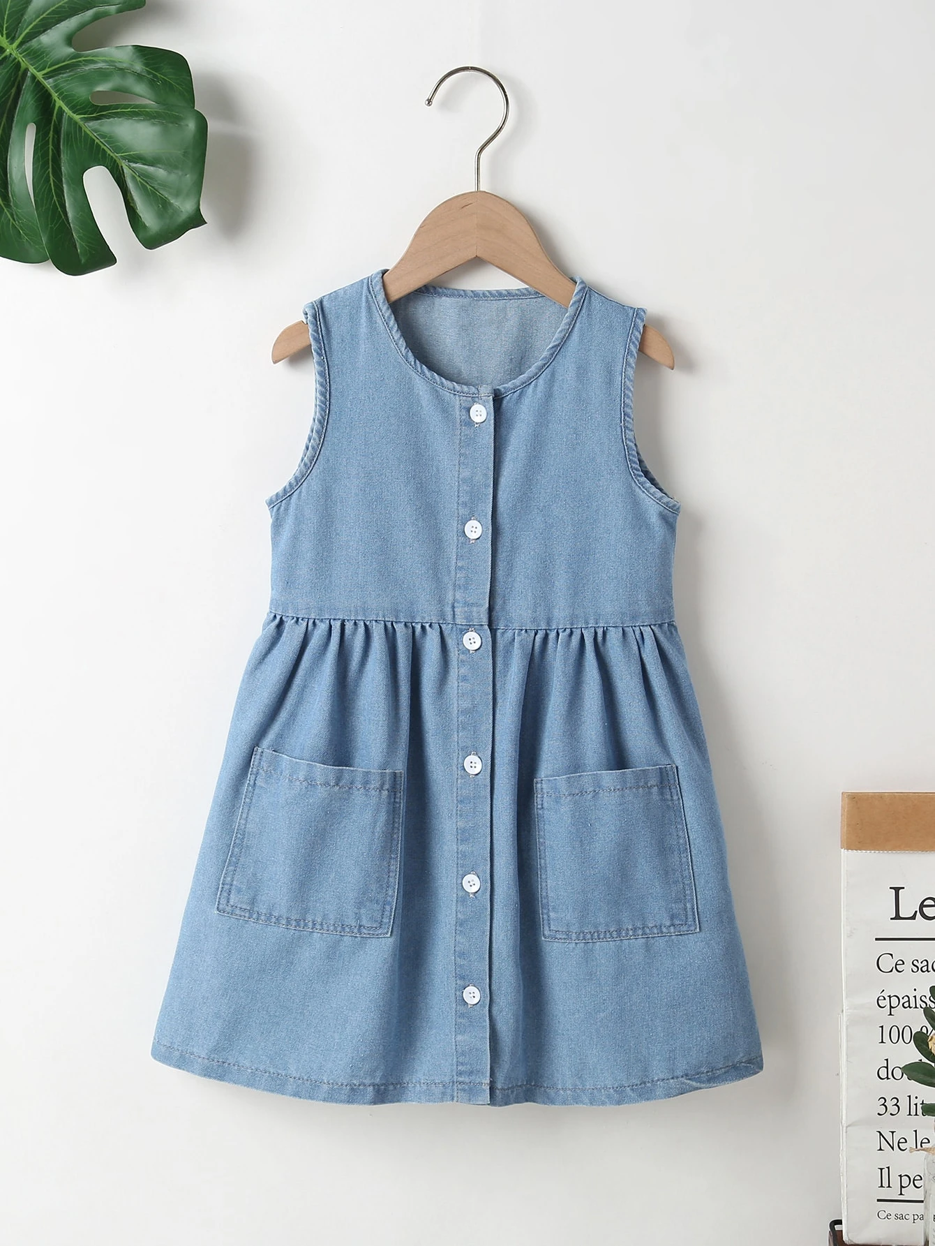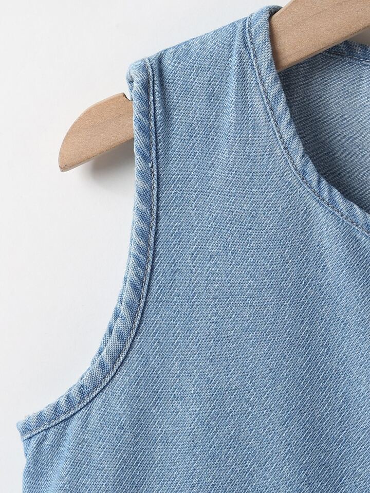 Toddler Girls Pocket Patched Denim Dress