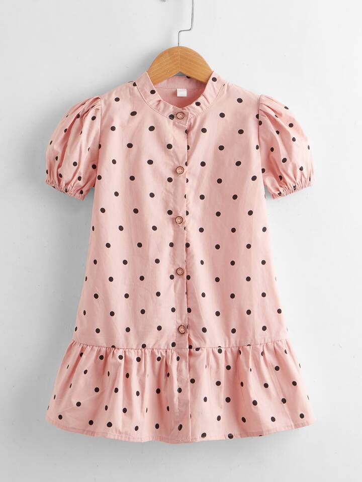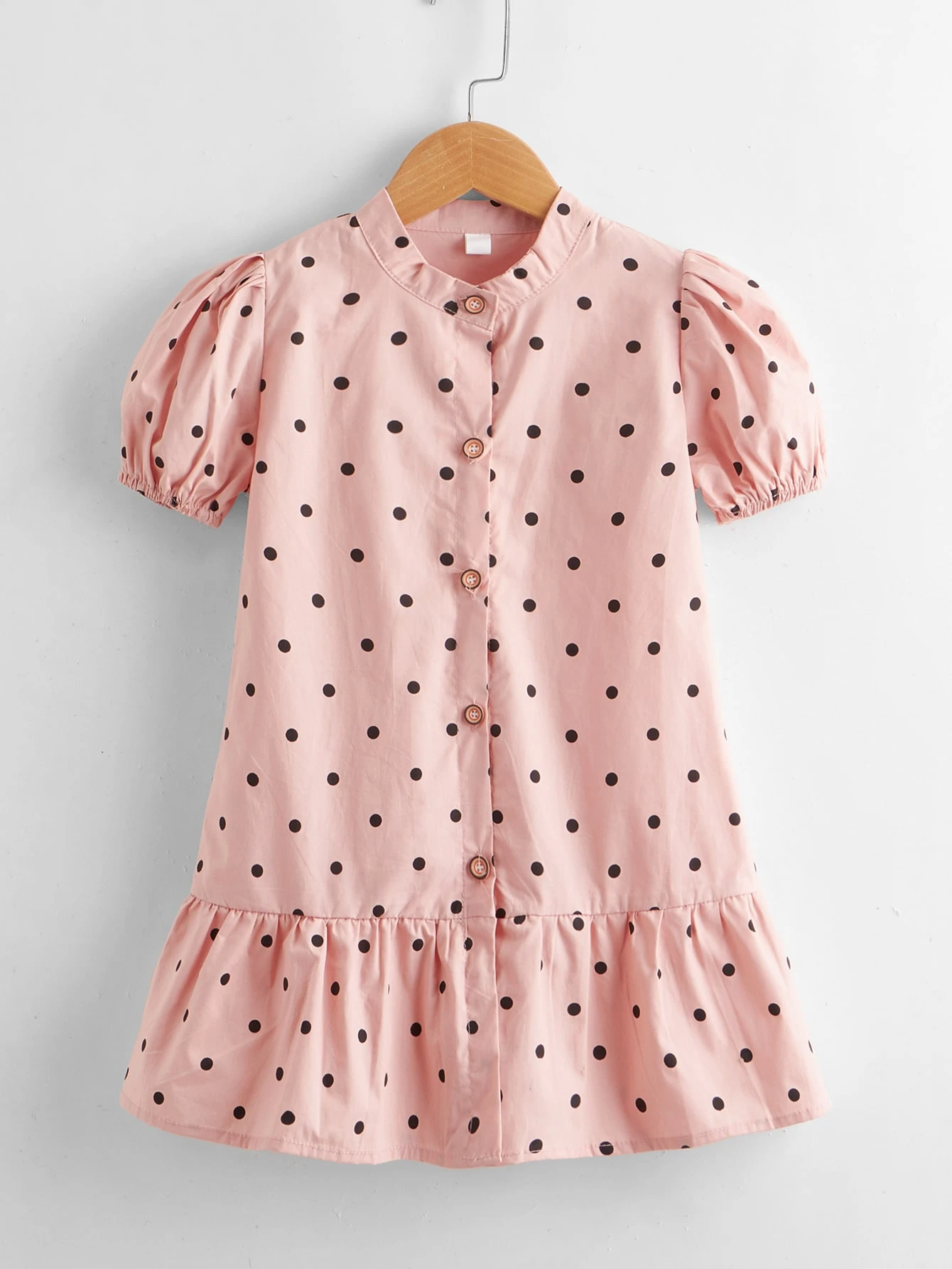 Toddler Girls Polka Dot Ruffle Hem Smock Dress