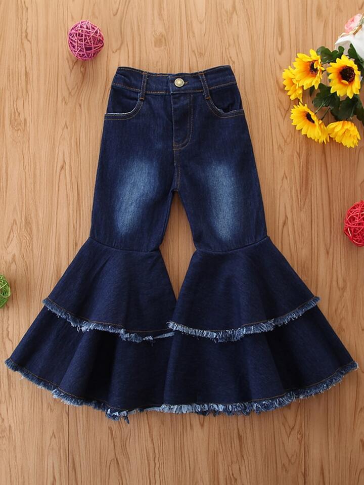 Toddler Girls Washed Tiered Layer Flare Leg Jeans