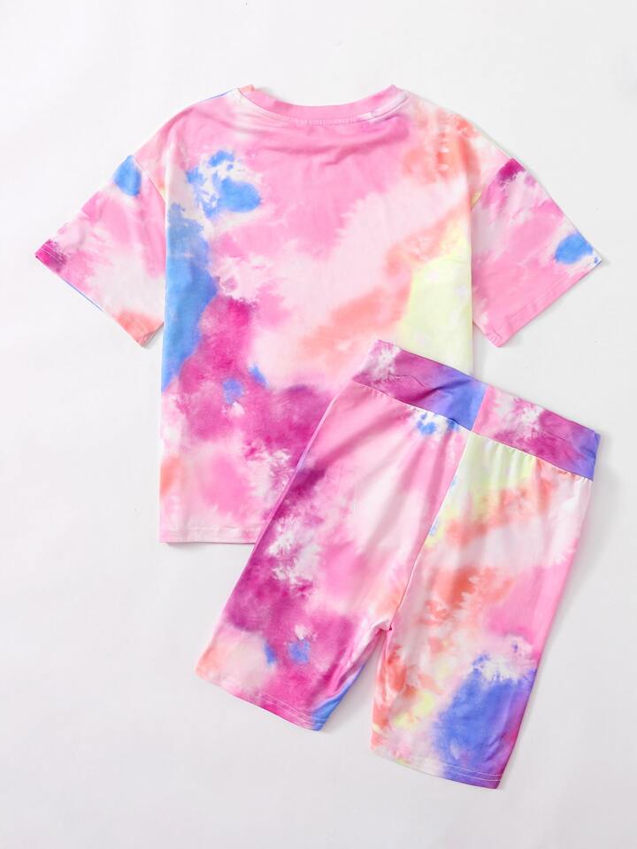 Tween Girl Tie Dye Tee And Biker Shorts Set
