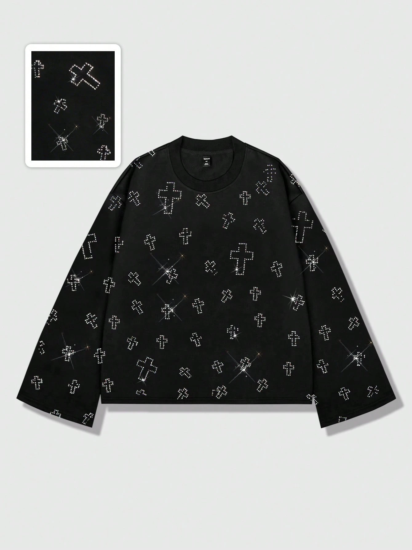 Unisex Casual Fashionable Rhinestone Embellished Crew Neck Long Sleeve T-Shirt