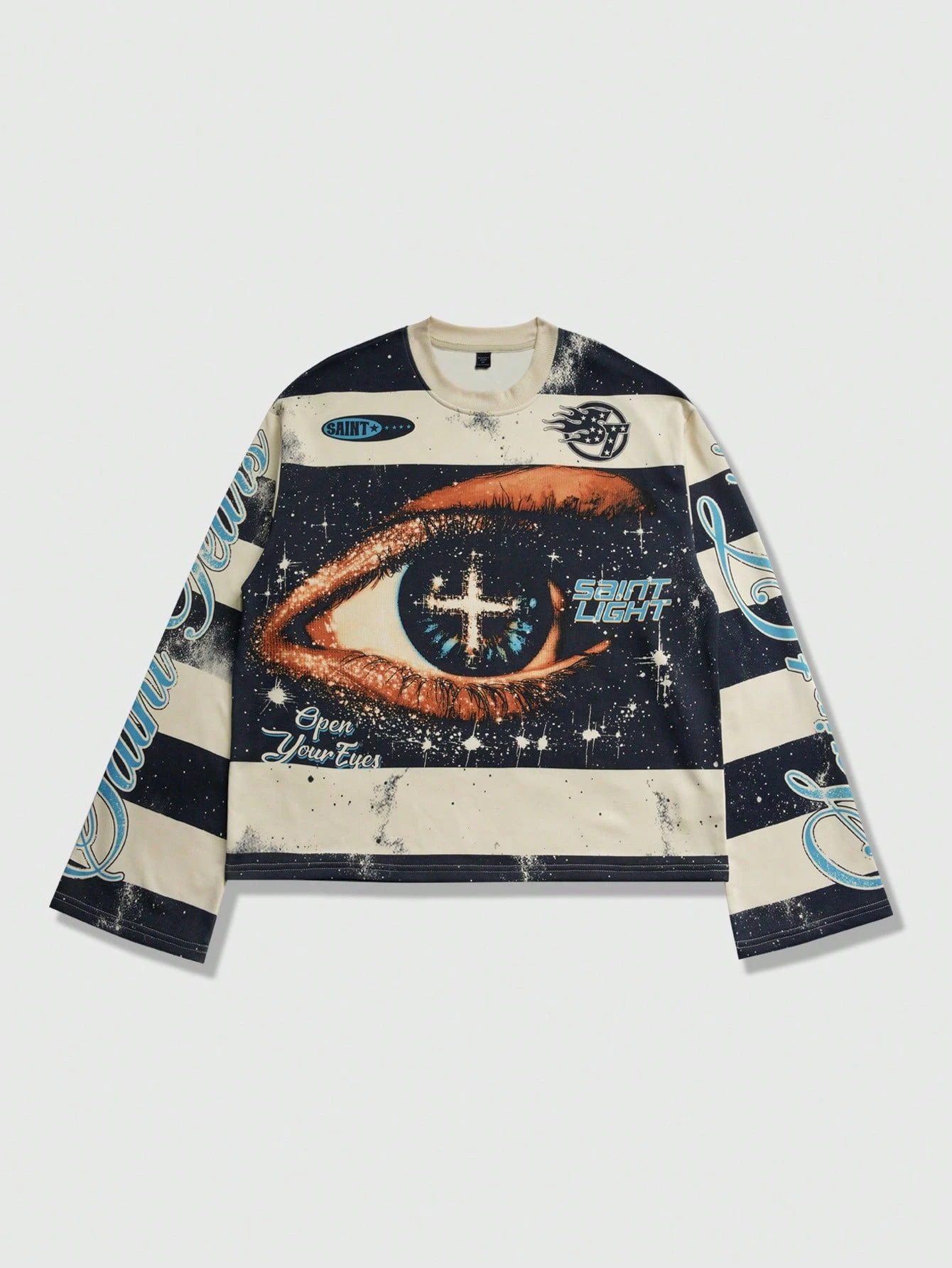 Unisex Casual Round Neck Printed T-Shirt, Couple Matching Street Style Long Sleeve Top, Spring/Autumn
