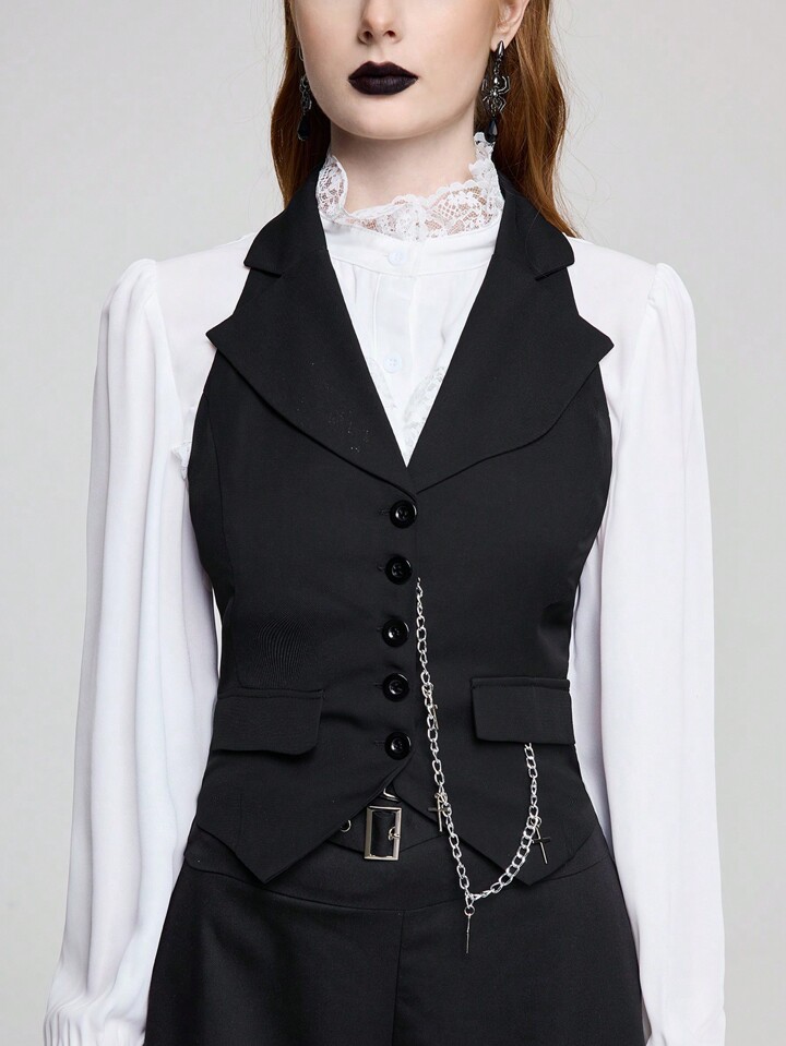 Unisex Vintage Dark Goth High Neck Backless Fitted Tank Top For Women