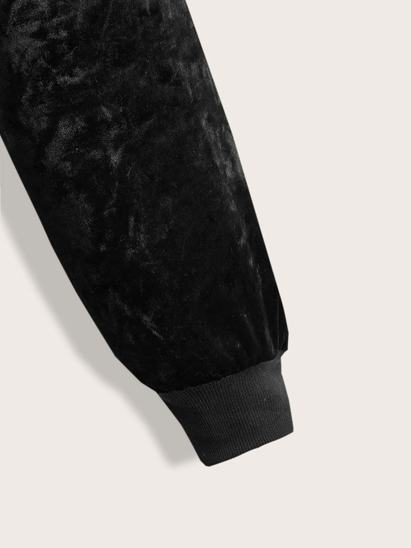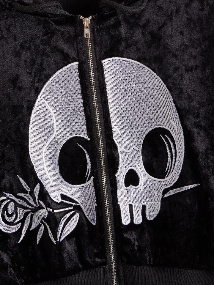Velvet Skull Embroidery Zip Up Hoodie