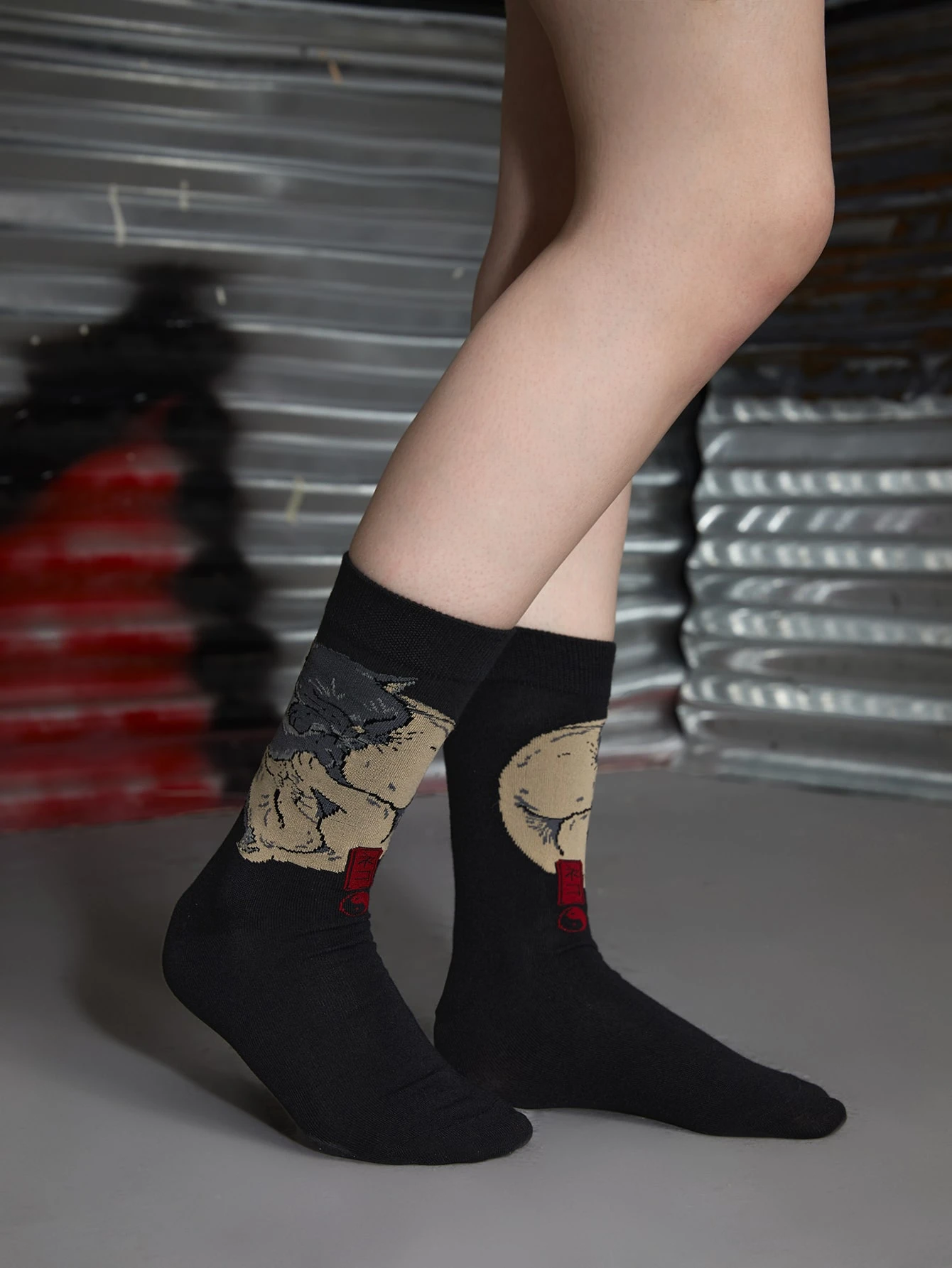 Vincenttrinidadart 1pair Women Cartoon Cat Graphic Fashion Crew Socks