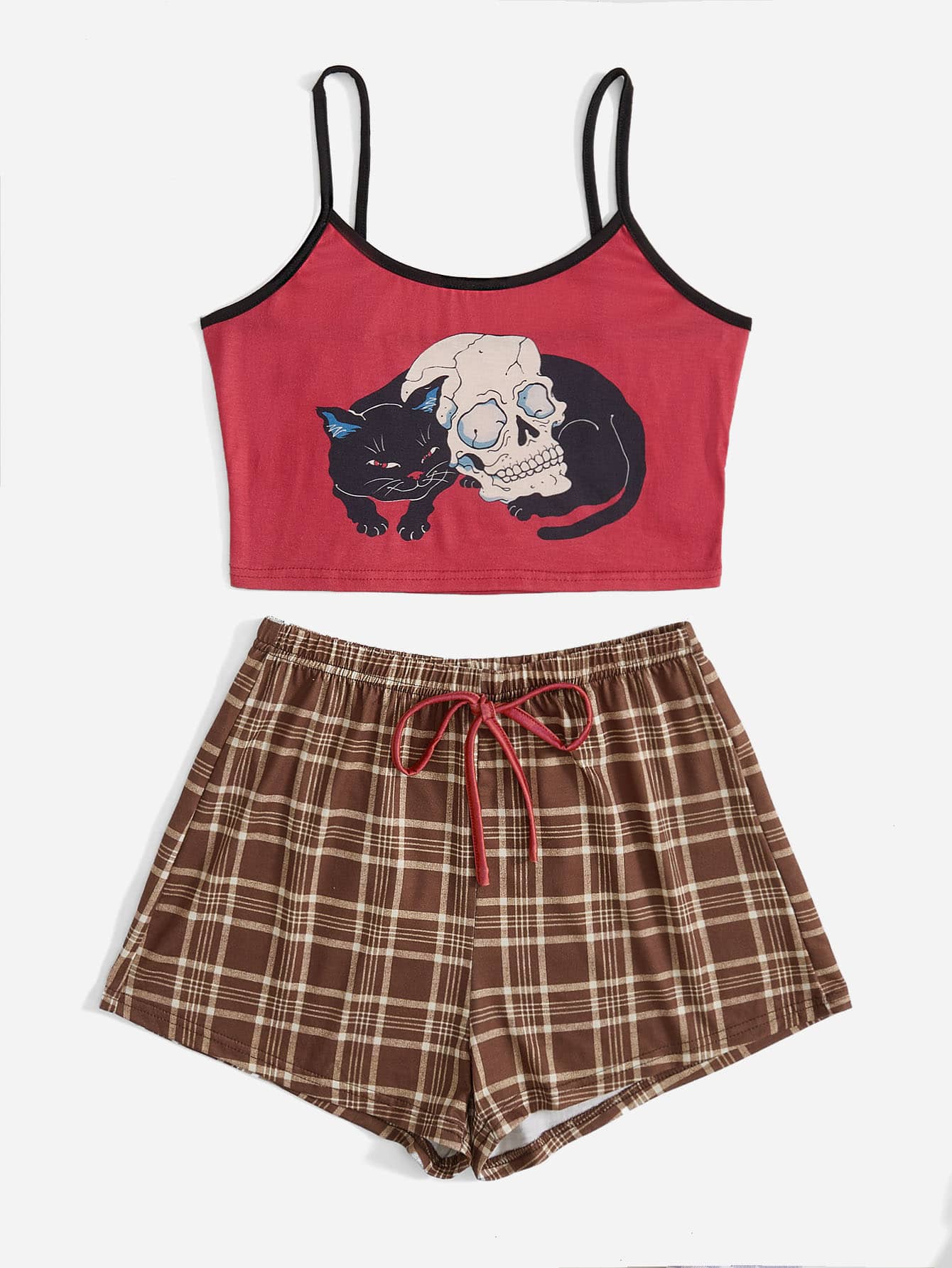 Vincenttrinidadart Plaid & Skull Print PJ Set