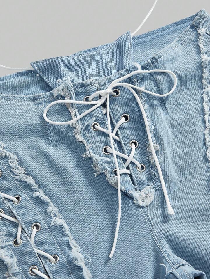 Vintage Retro Lace-Up Low-Waist Denim Jeans