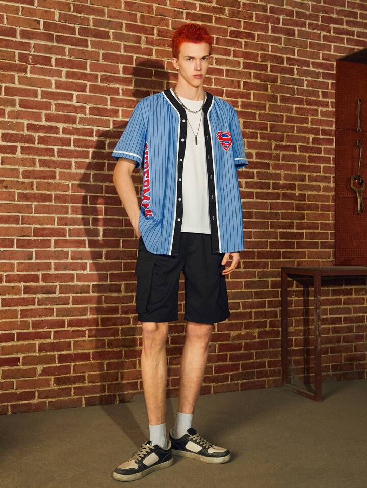 WB 100th | ROMWE Guys Cartoon & Letter Graphic Striped Shirt