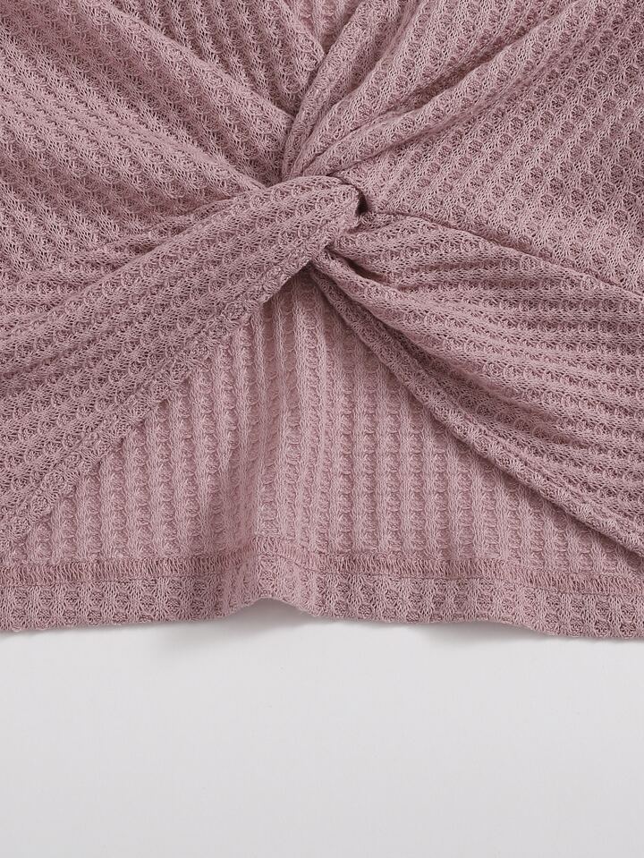 Waffle Knit Twist-Front Crop Top