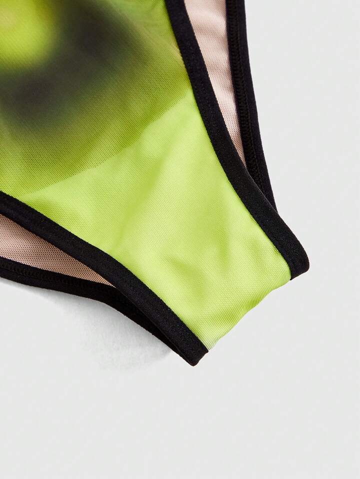 Warp Atelie Contrast Trim Mesh Sheer Sexy Bodysuit