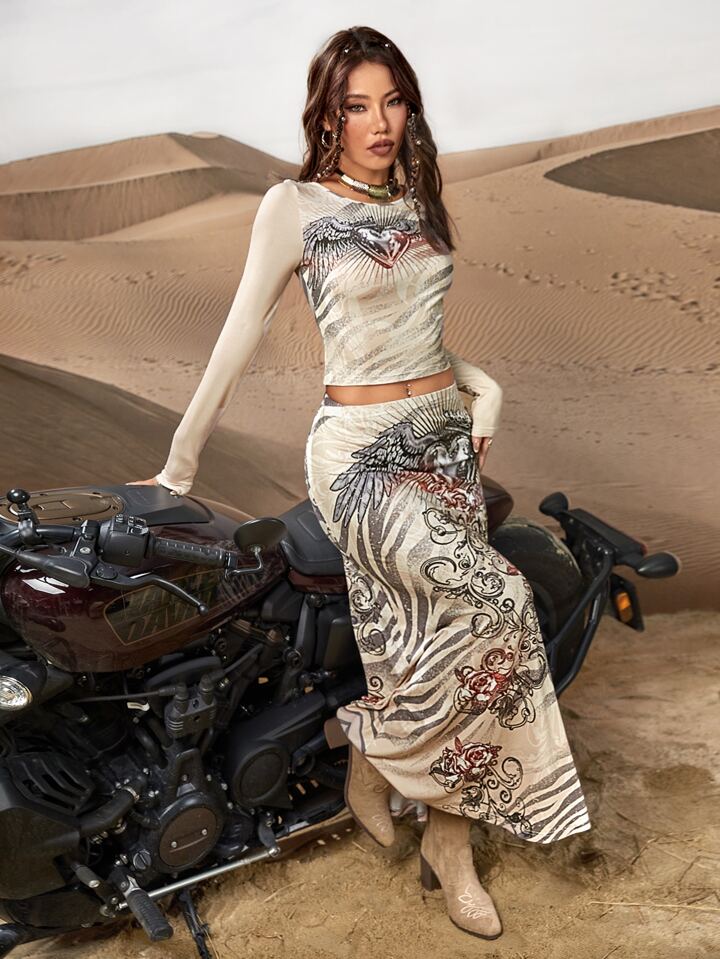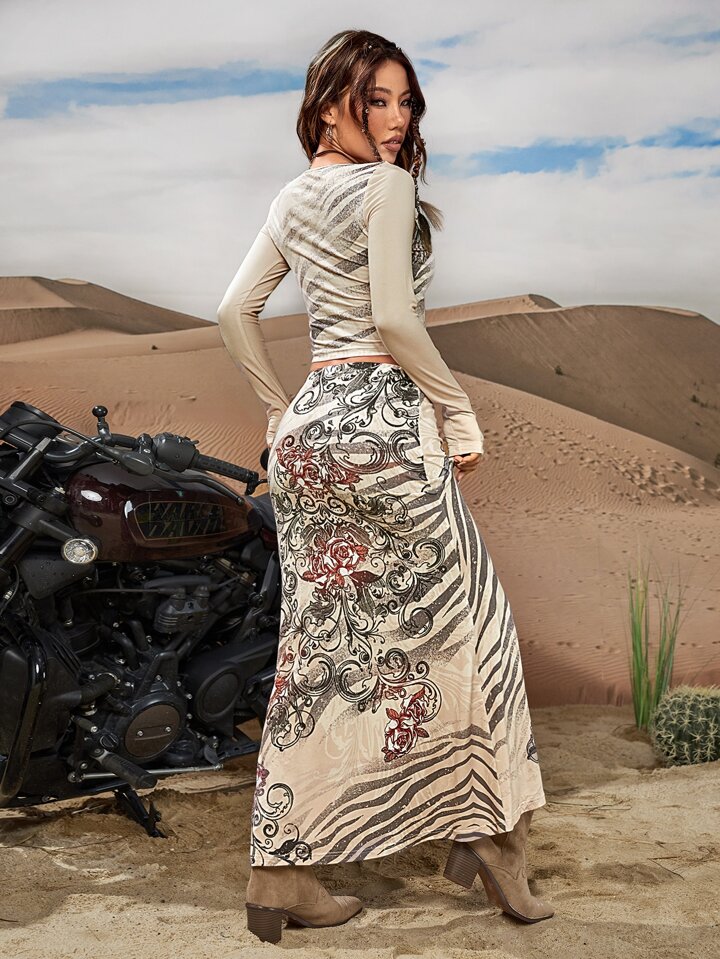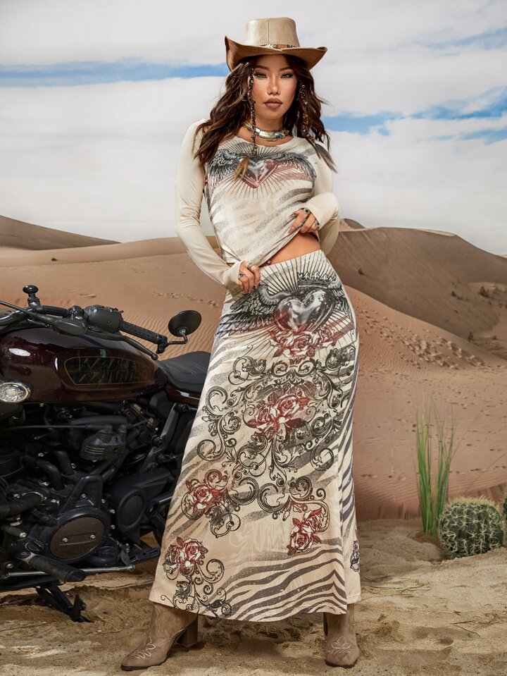 Western Cowgirl Heart & Wings Print Crop Top & Zebra Striped & Floral Print Skirt