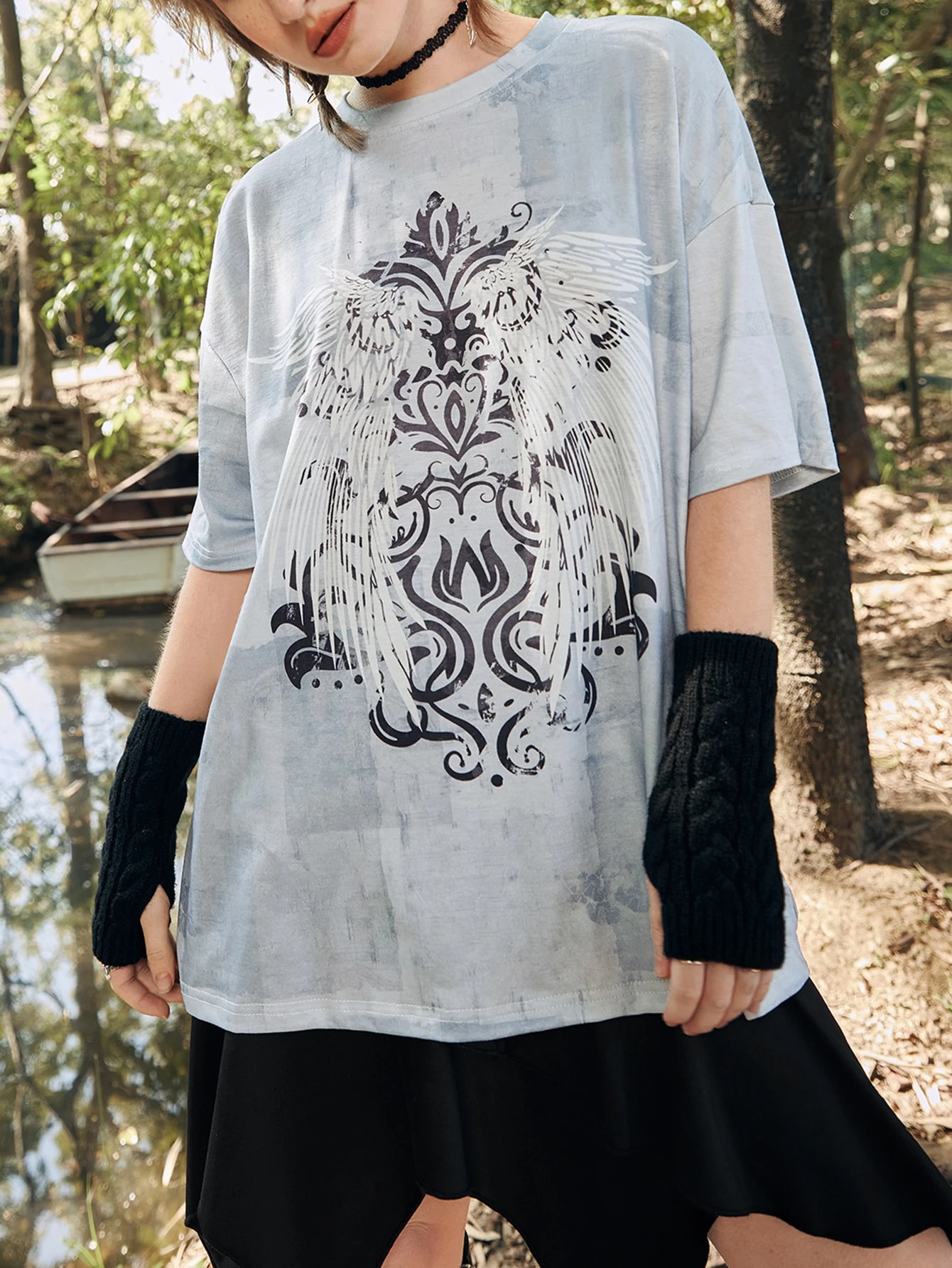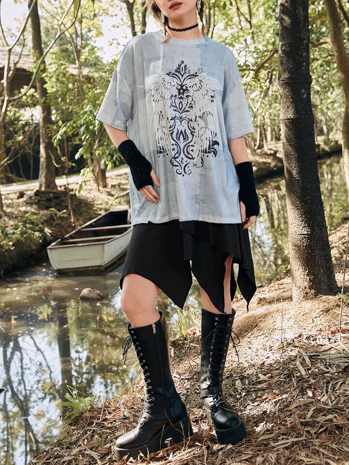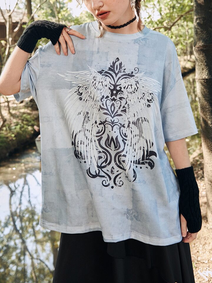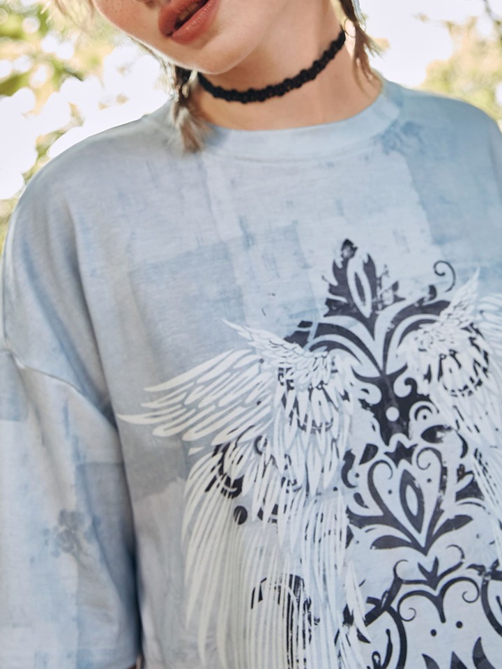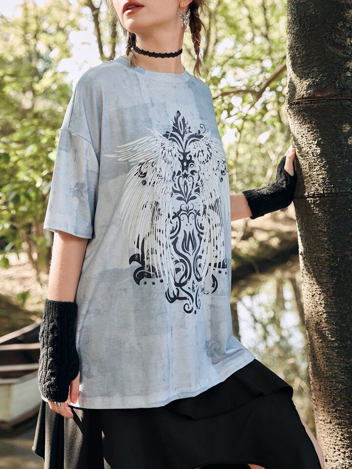 Wings Print Drop Shoulder Tee
