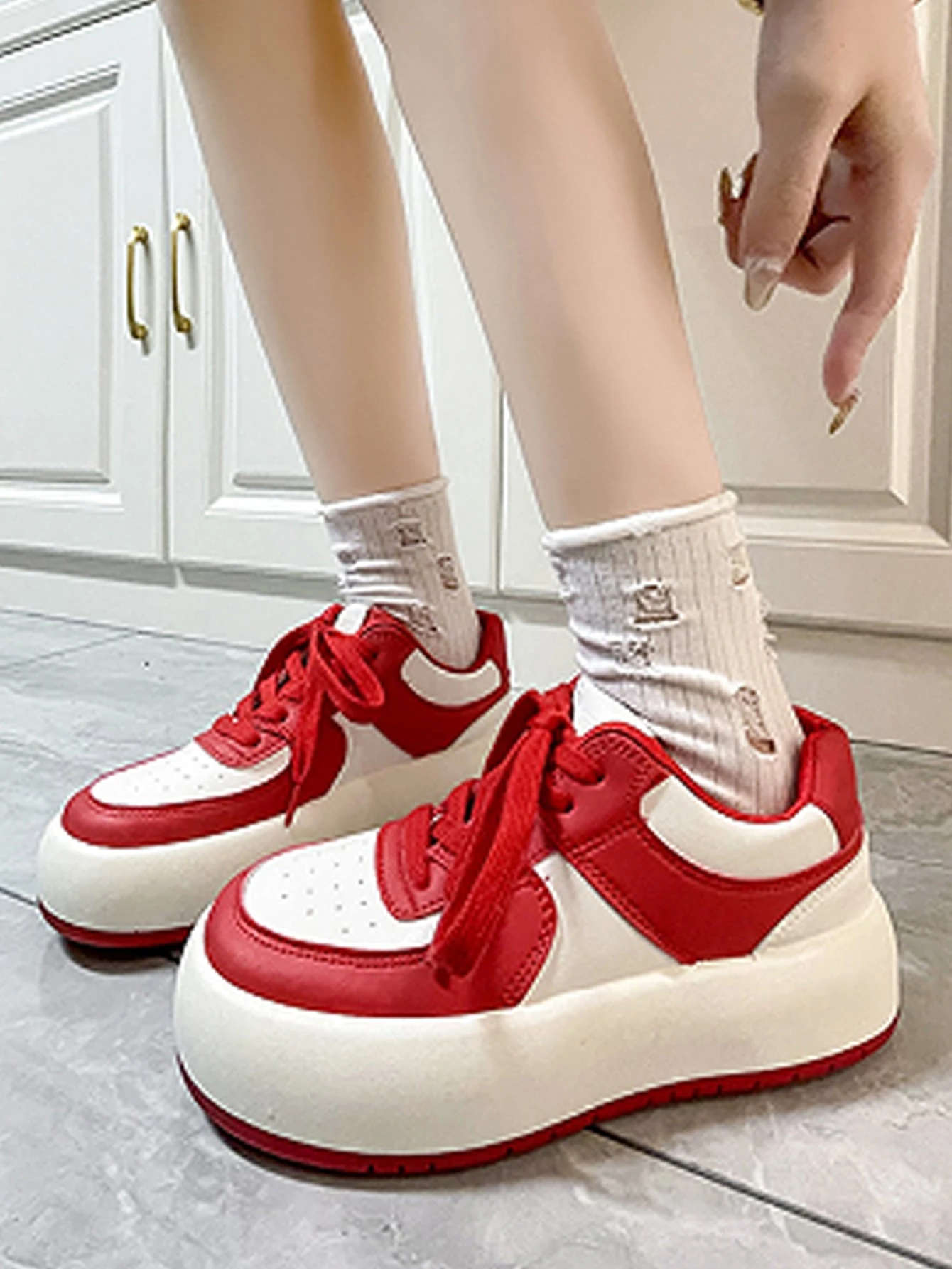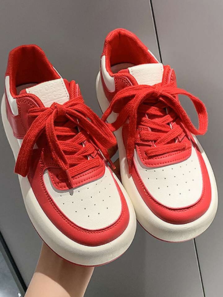 Women Color Block Wedge Sneakers, Lace-up Front Sneakers