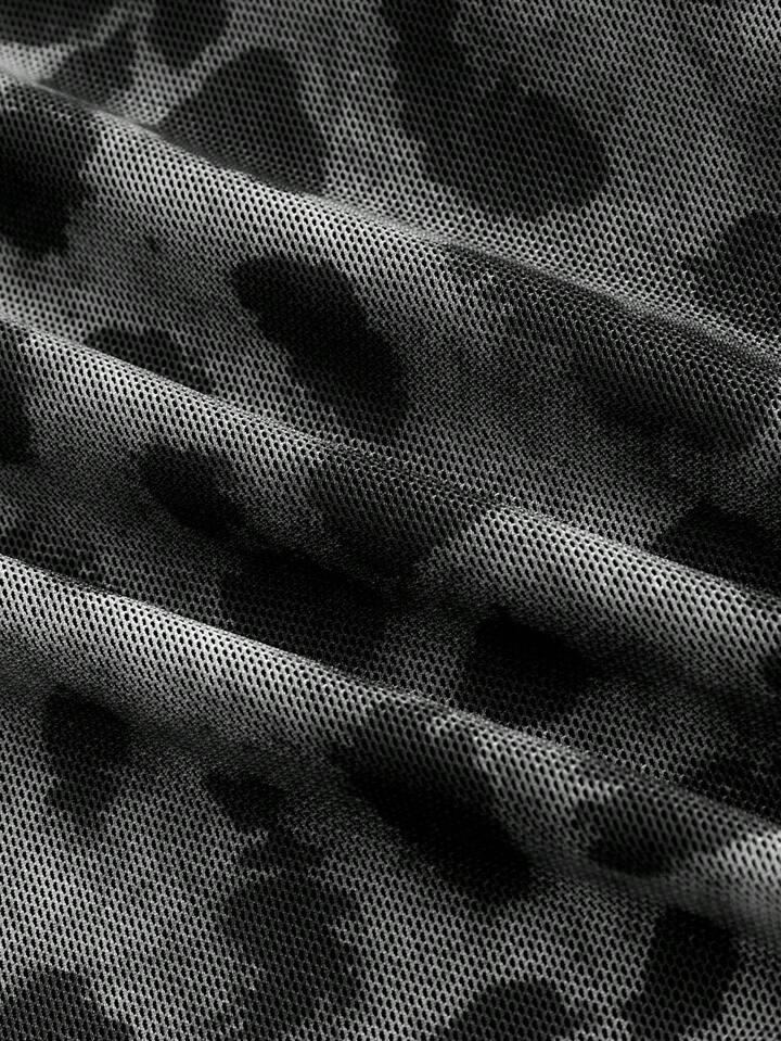 Women Leopard Print Mesh Long Sleeve Square Collar Casual Blouse