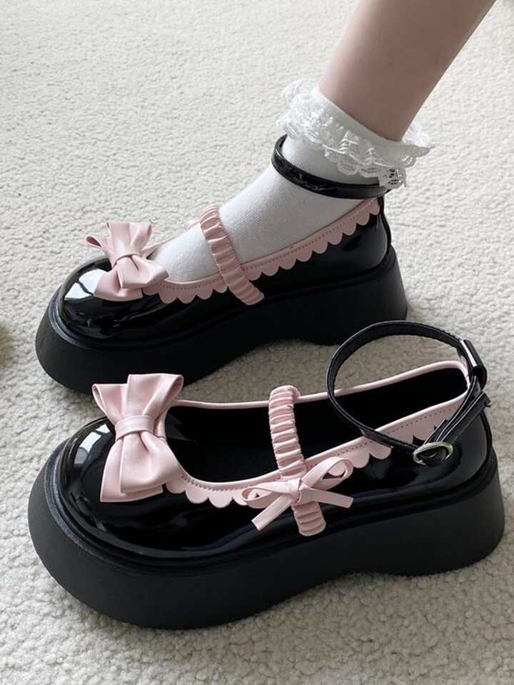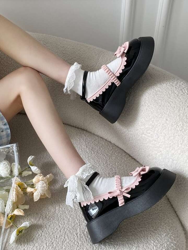 Women Two Tone Bow Decor Flatform Shoes, Preppy Outdoor Flatform Mary Jane Shoes
