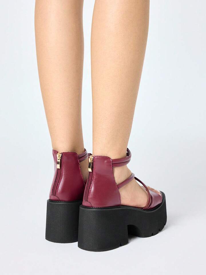 Women's Black Punk Gothic Platform Sandals, Retro Roman Criss-Cross Straps Peep Toe Thick Heel High Heels, Halloween