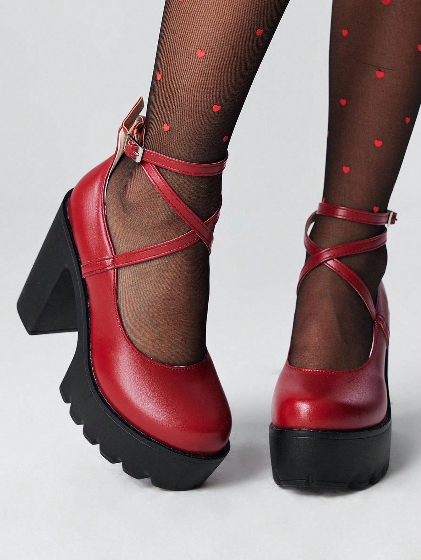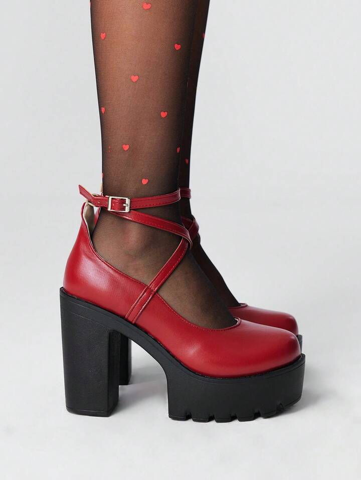Women's Dark Gothic Punk Rock Closed Toe Strap Mary Jane Shoes, Chunky Heel Strap Work Uniform Shoes, Waterproof Platform Formal Heels, Halloween