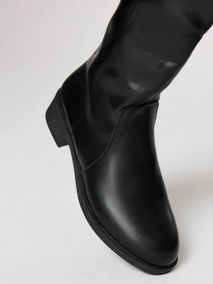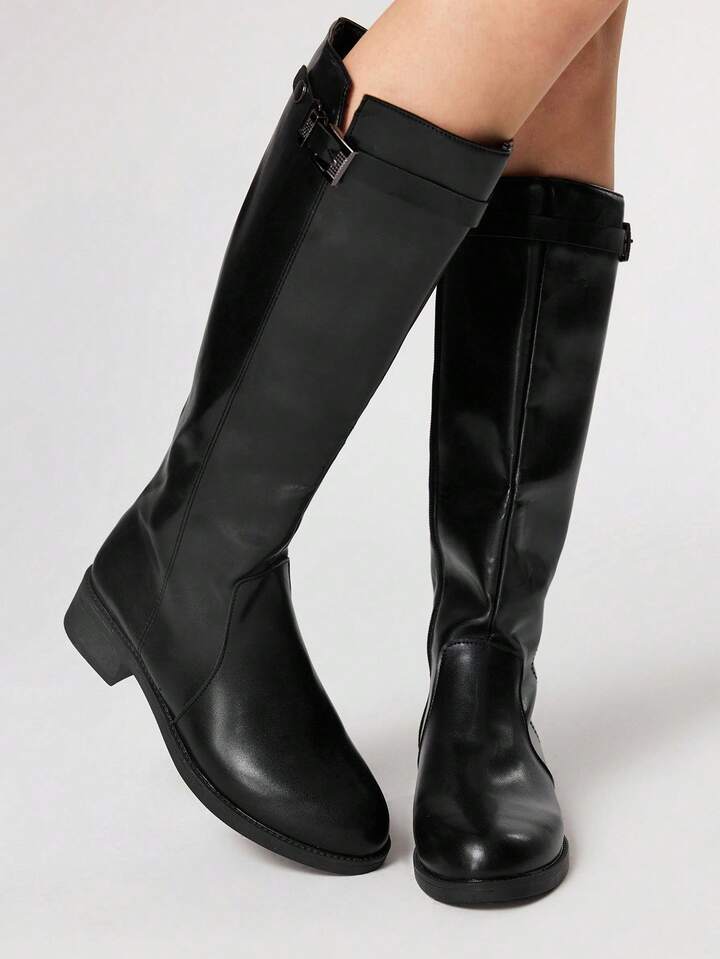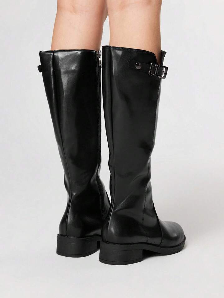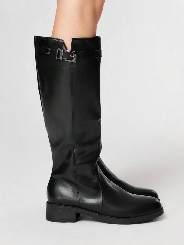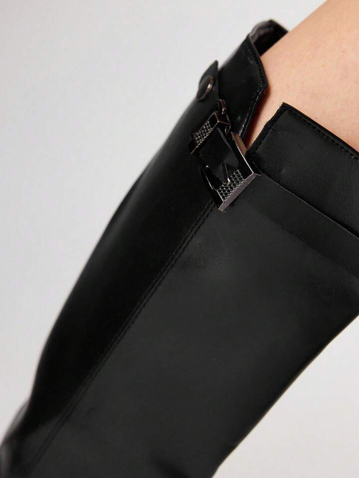 Women's Dark Rock Punk Goth Boots, Leather High-Top Pointed Toe Buckle Long Boots