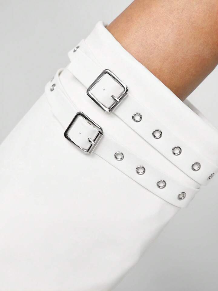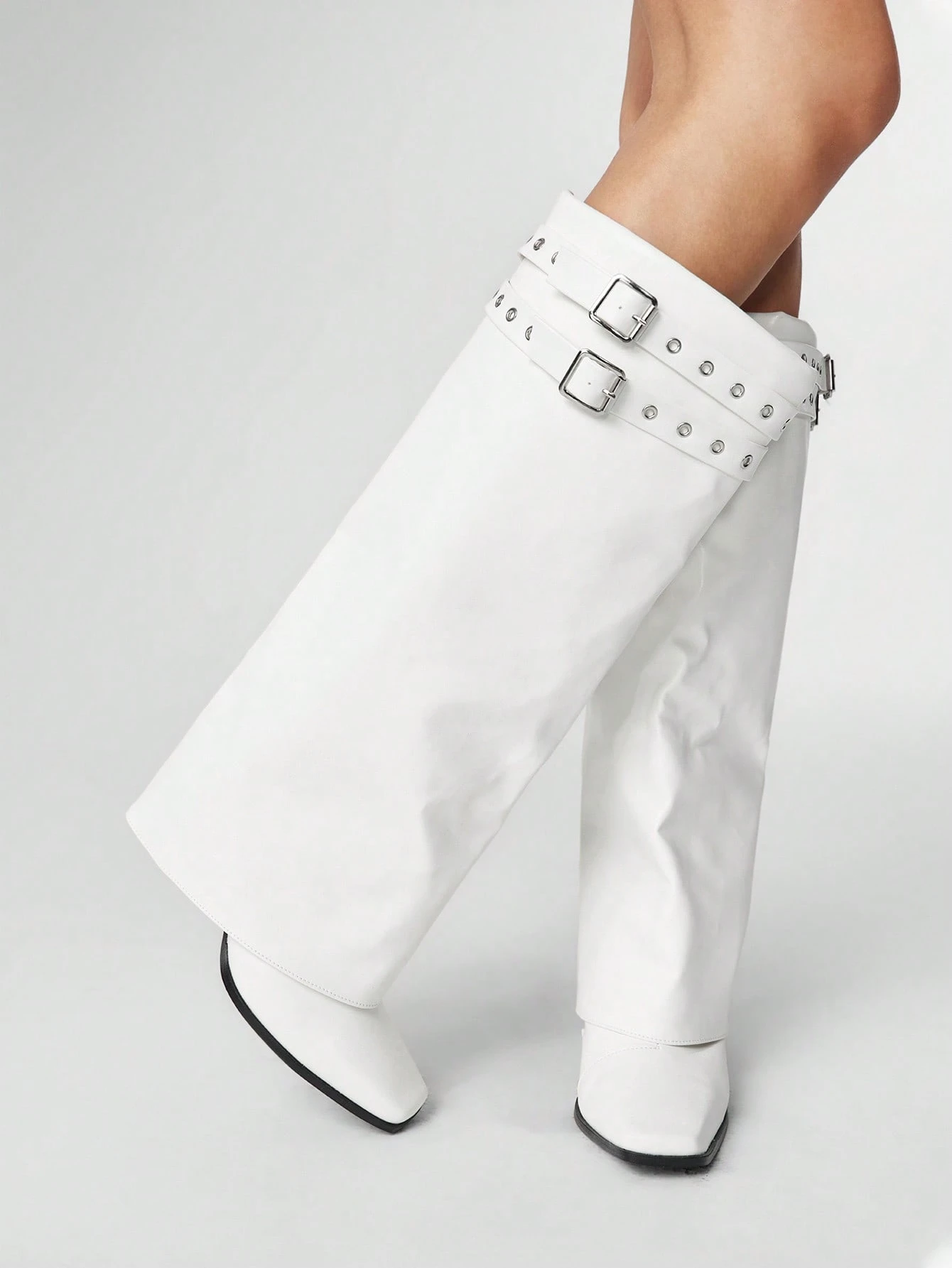 Women's Double Buckle Design Fashion Square Toe Stiletto Heel Knee-High Boots