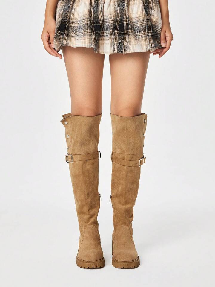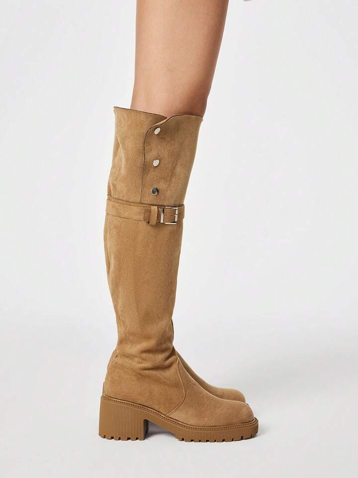 Women's Fashion Versatile Commuter Buckle Thick Heel Over-The-Knee Boots
