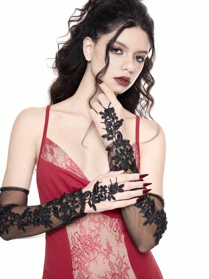 Women's Gothic Lace Mesh Mid-Length Gloves
