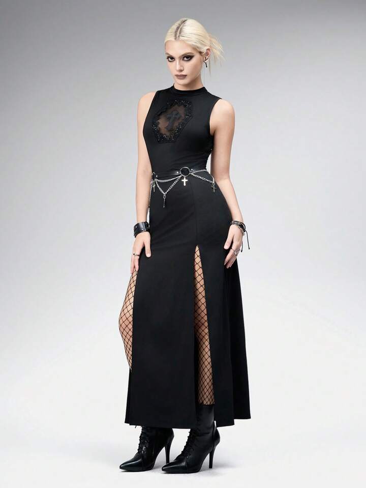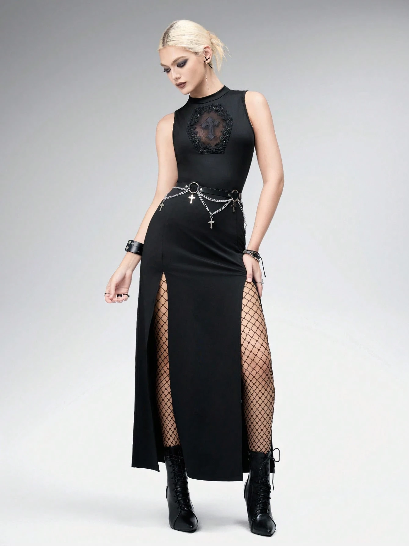 Women's Gothic Metal Chain Decor Sleeveless Dress
