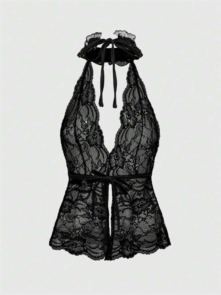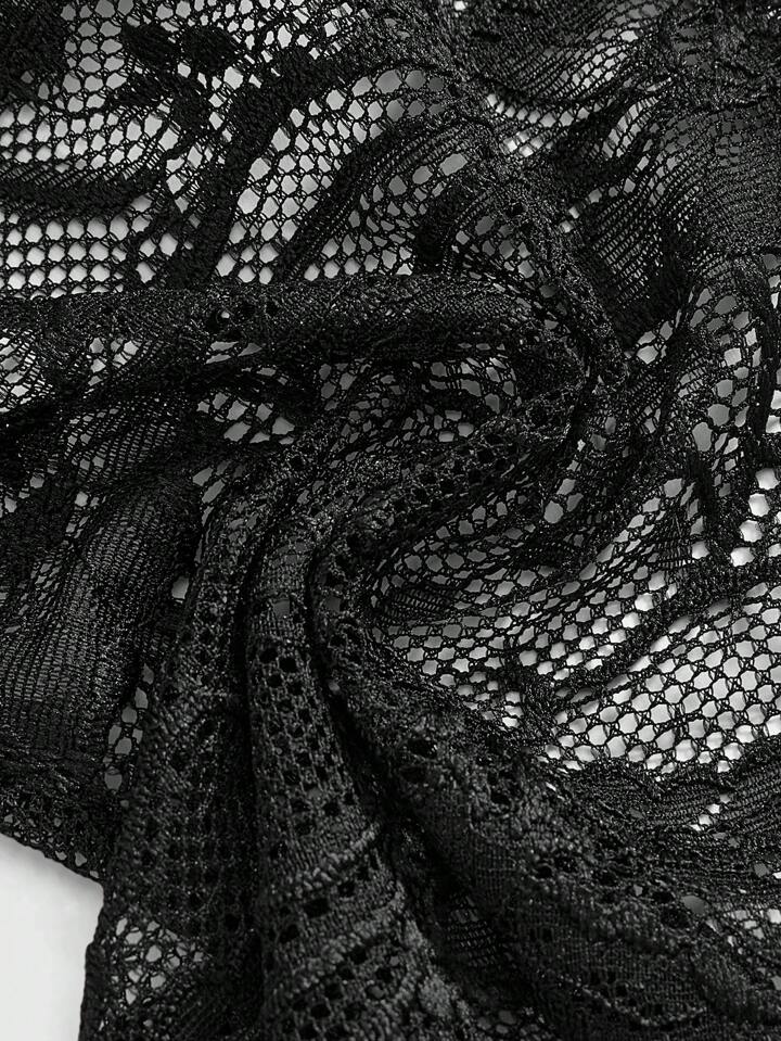 Women's Gothic Palace Black Mesh Lace Low-Cut Vacation Sheer Tie-Up Camisole, Suitable For Music Festivals, Weddings