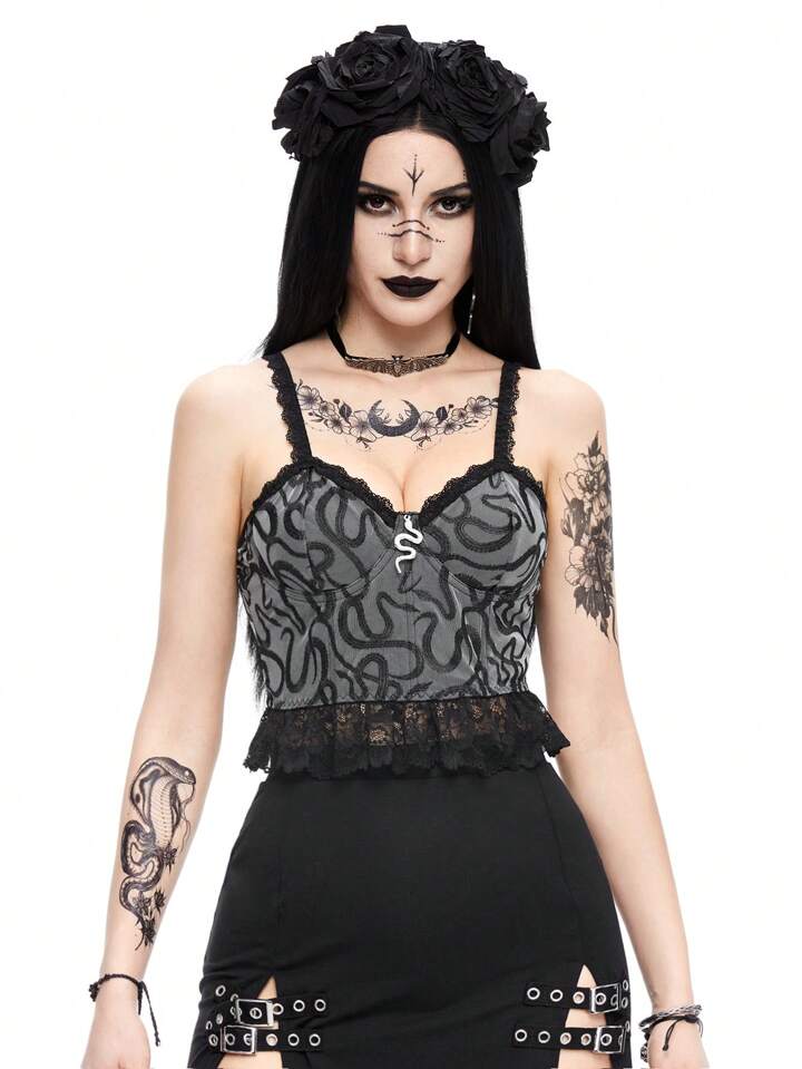 Women's Gothic Snake Print Embroidery Cami Top For Summer