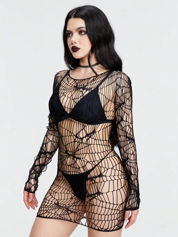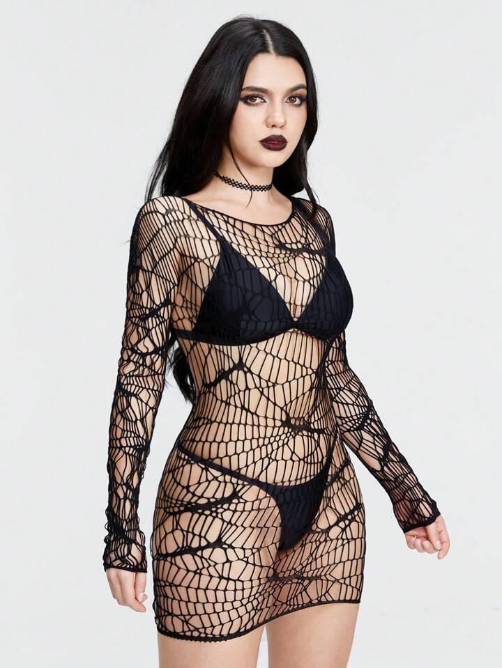 Women's Gothic Style Sexy Lingerie Long Sleeve Fishnet Top
