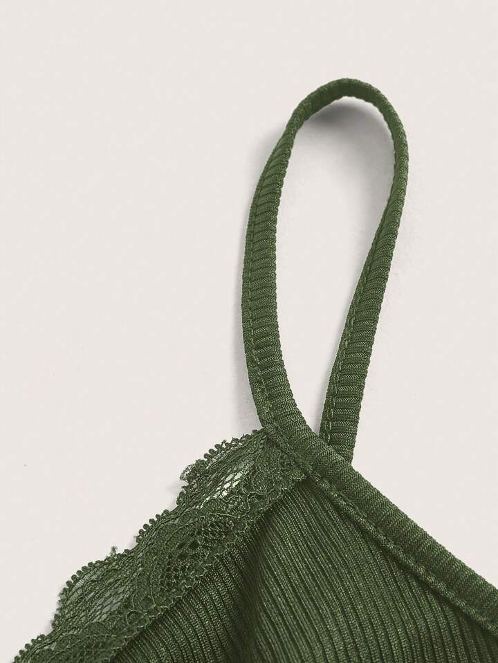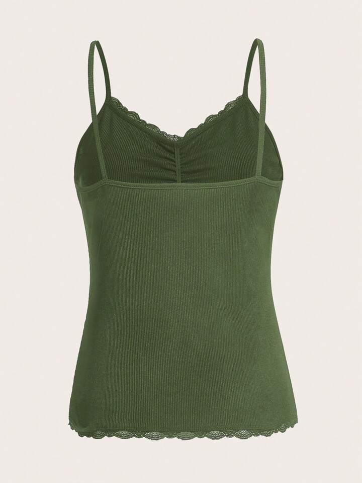 Women's Lace Trim Ribbed Camisole Top