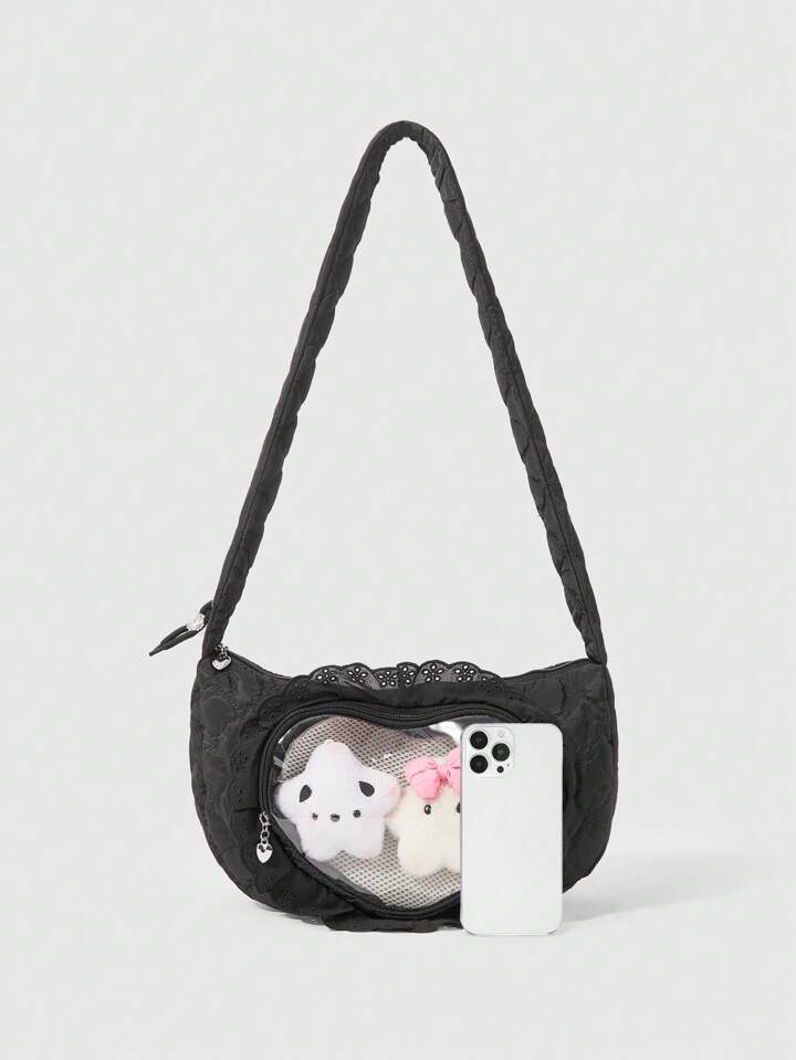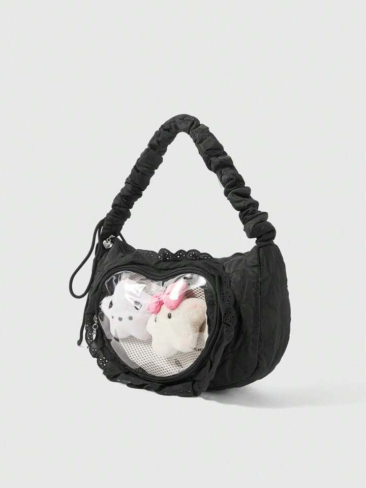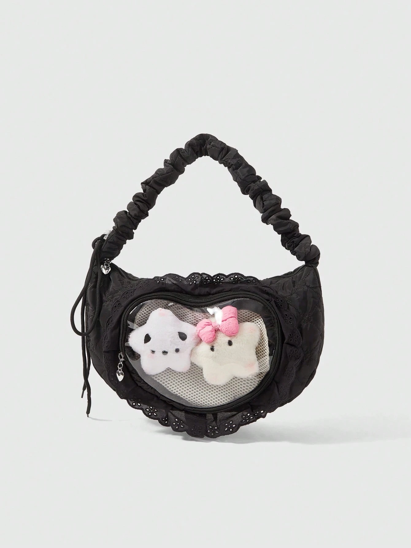 Women's Pink Ita Bag For Women - Anime Accessories Purse With Transparent Display Panel & Plush Charm Decorations, Adjustable Strap For Cosplay, Kawaii Fashion | Cute Collectible Organizer, Clear PVC Pocket For Badges