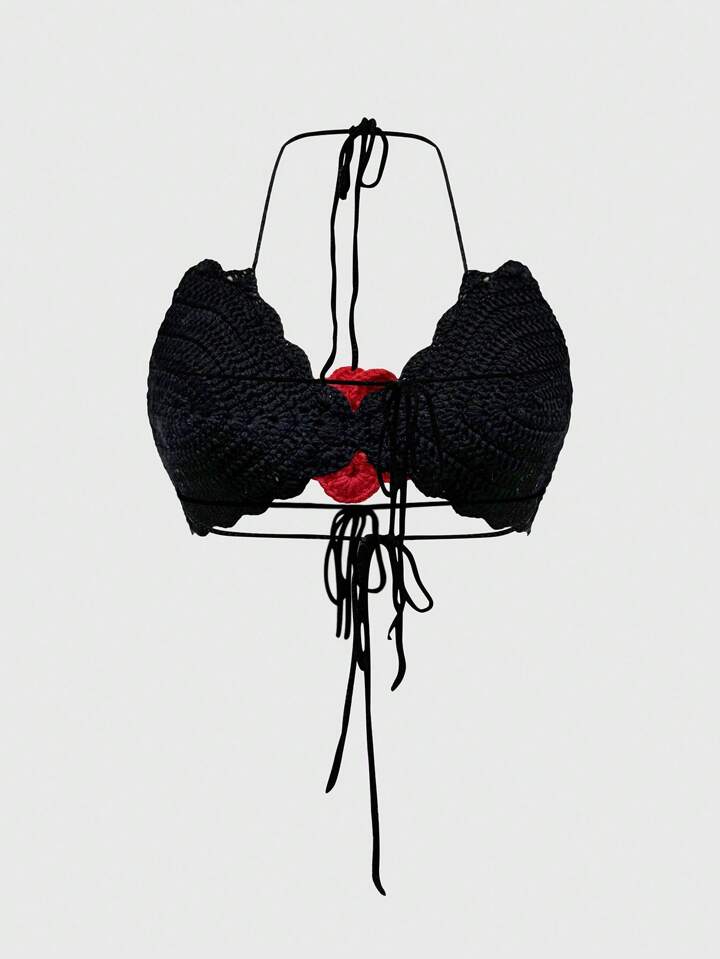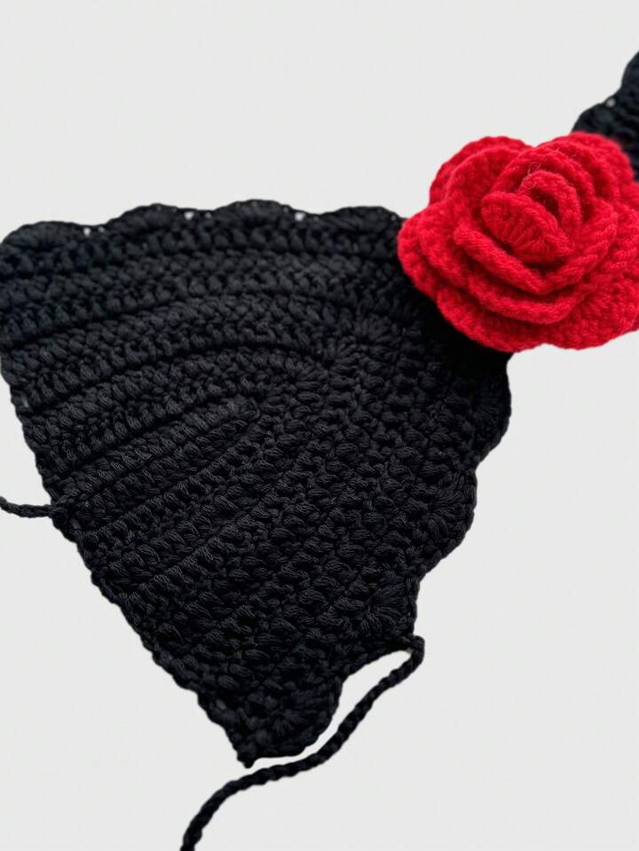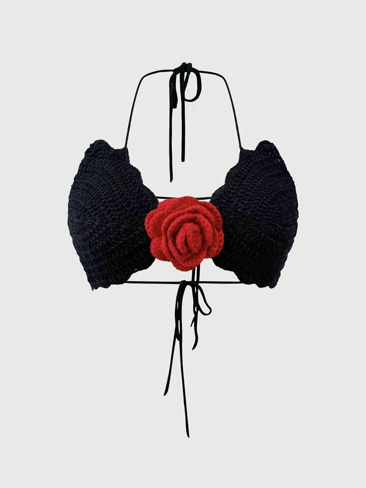 Women's Sexy Rose Floral 3D Crochet Halter Sleeveless Pullover Sweater, Vacation Style