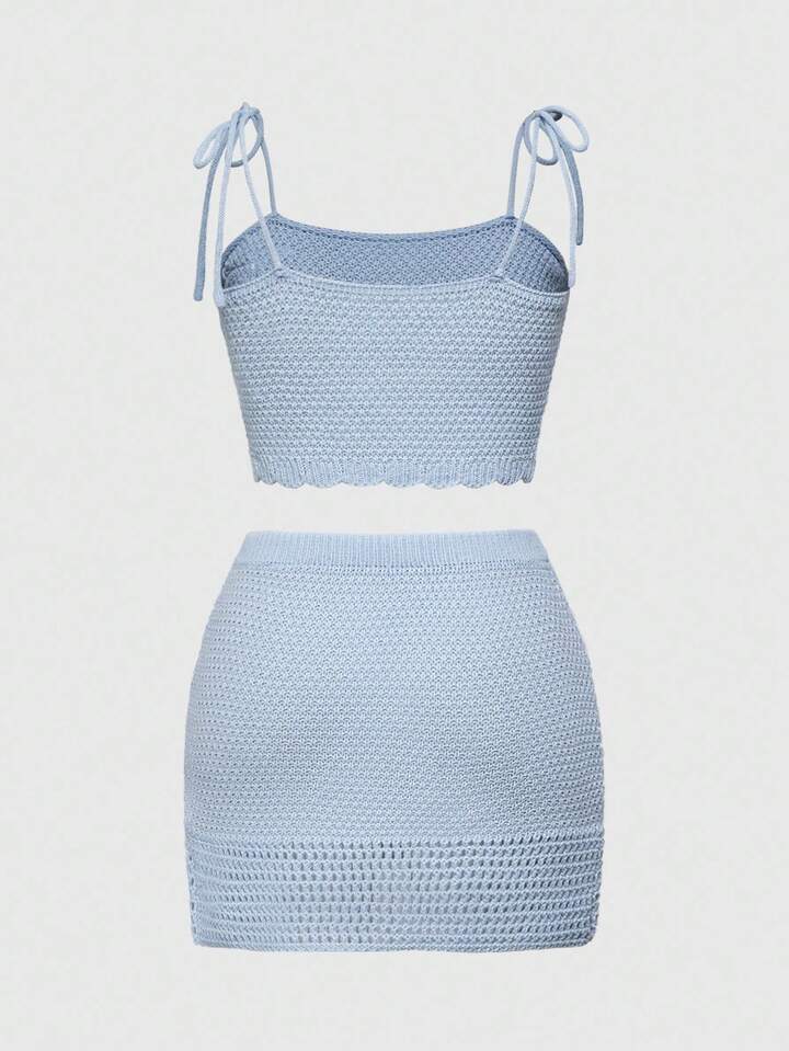 Women's Summer Beach Swimsuit Hollow 3D Starfish Knit Camisole And Mini Skirt Set
