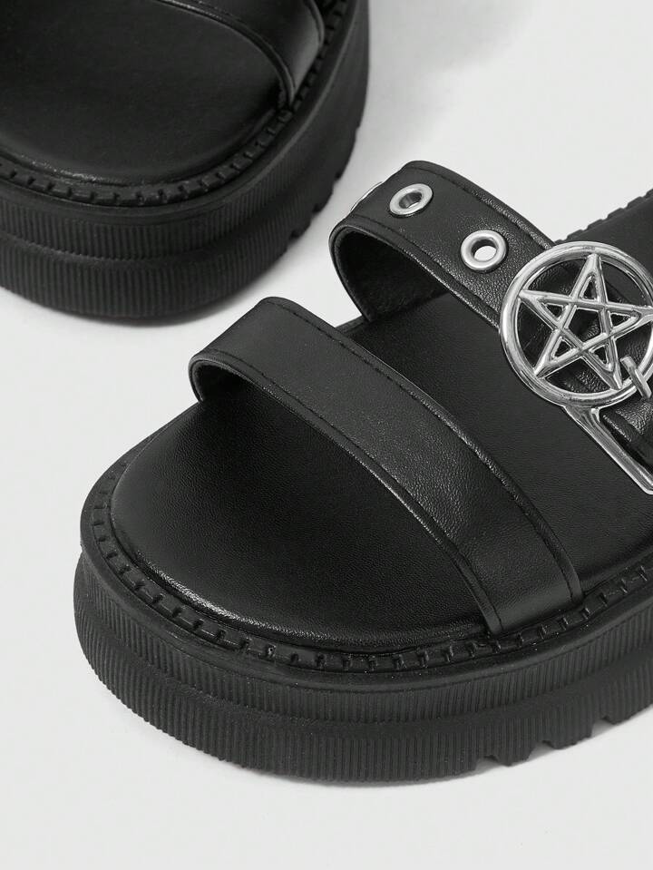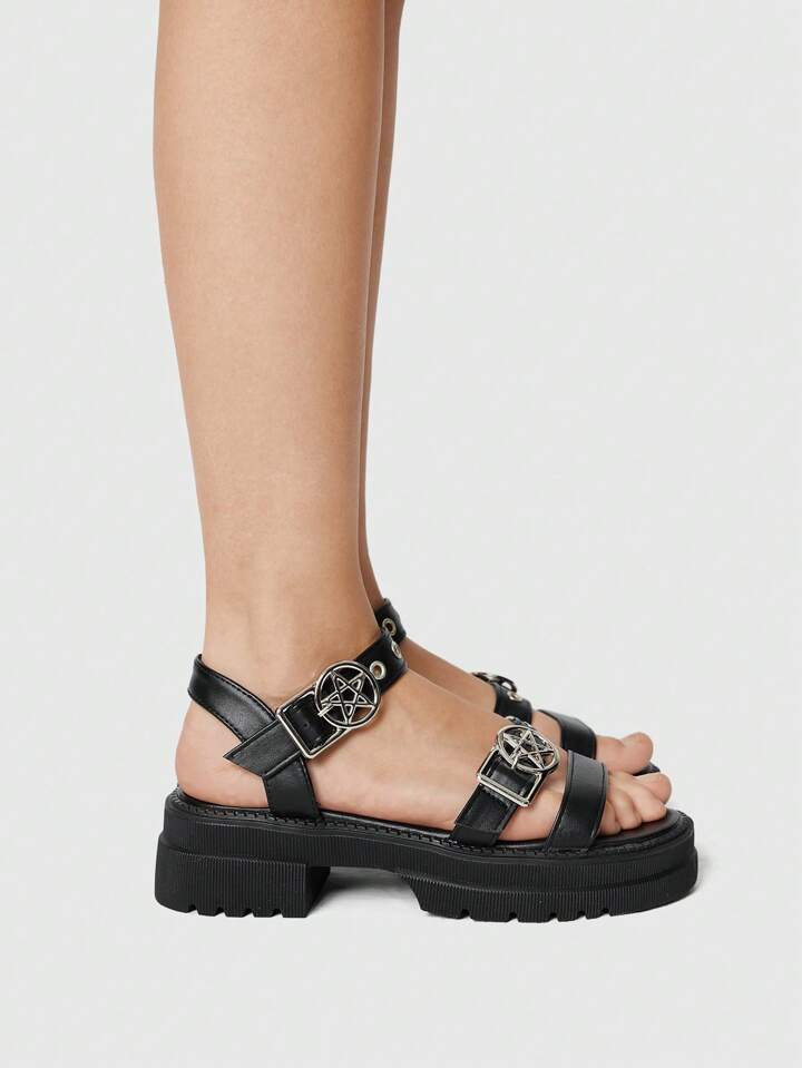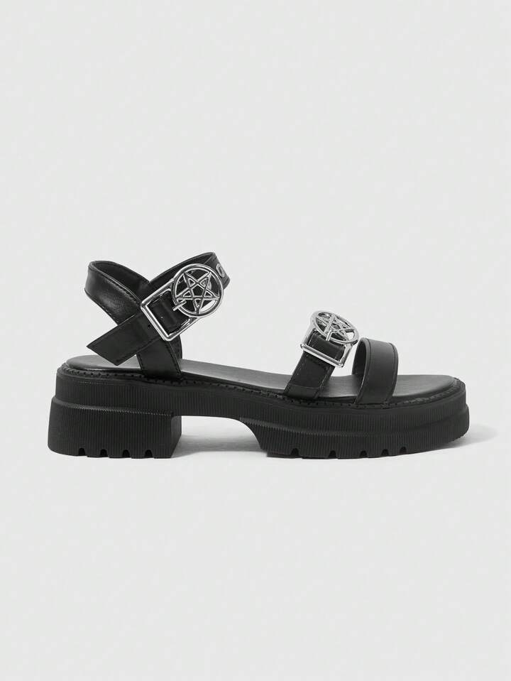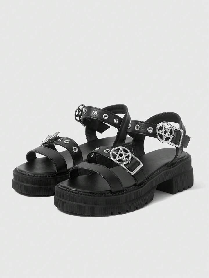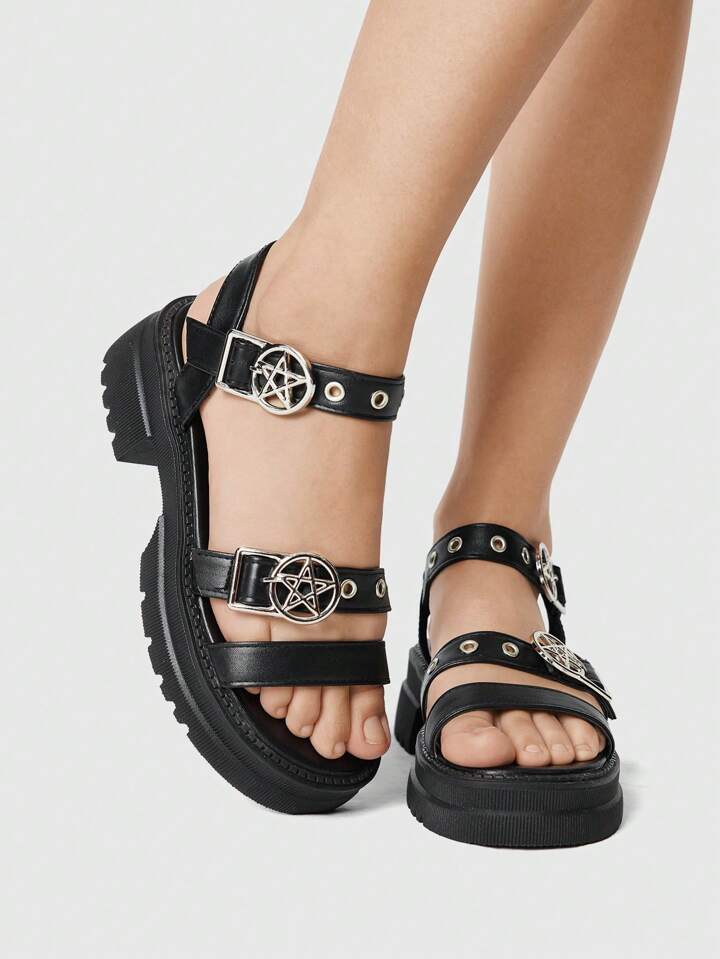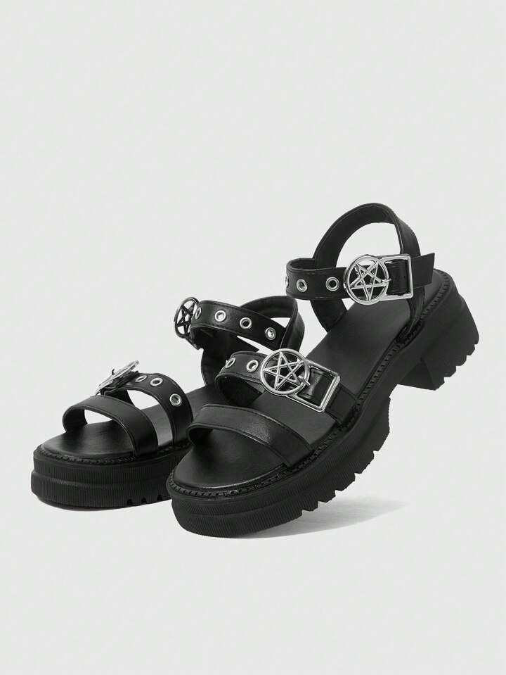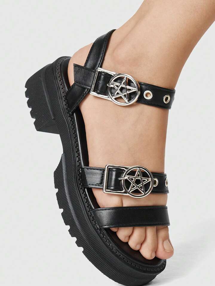 Women's Summer Open Toe Dark Rock Punk Goth Roman Beach Sandals, Star Strap Platform Wedge Sandals Spring Shoes Spring Break Easter, Halloween