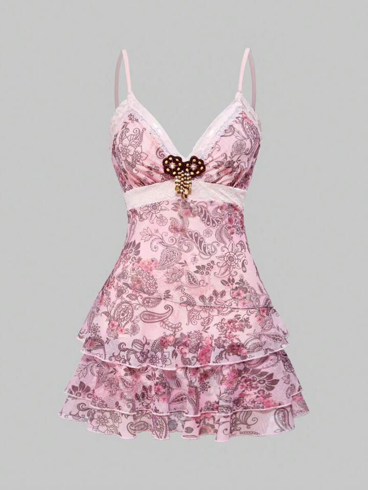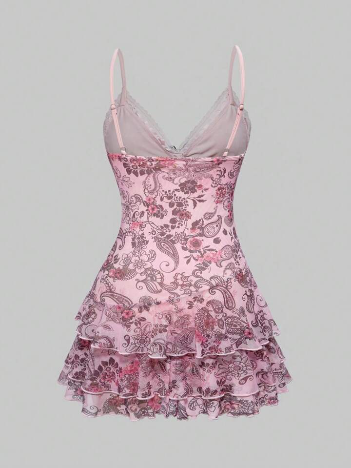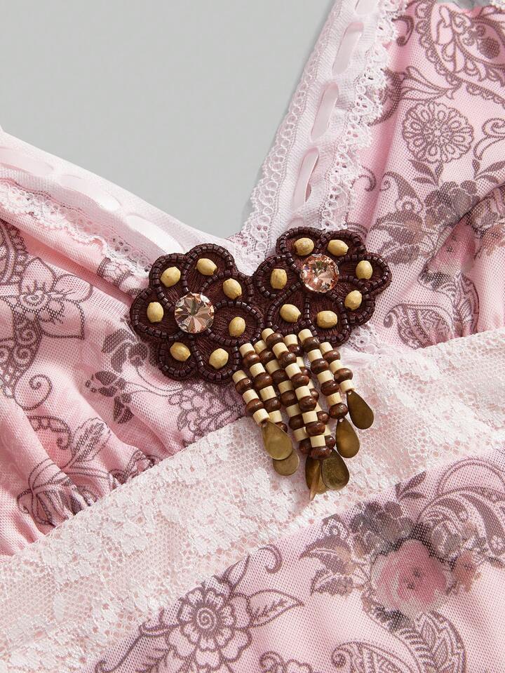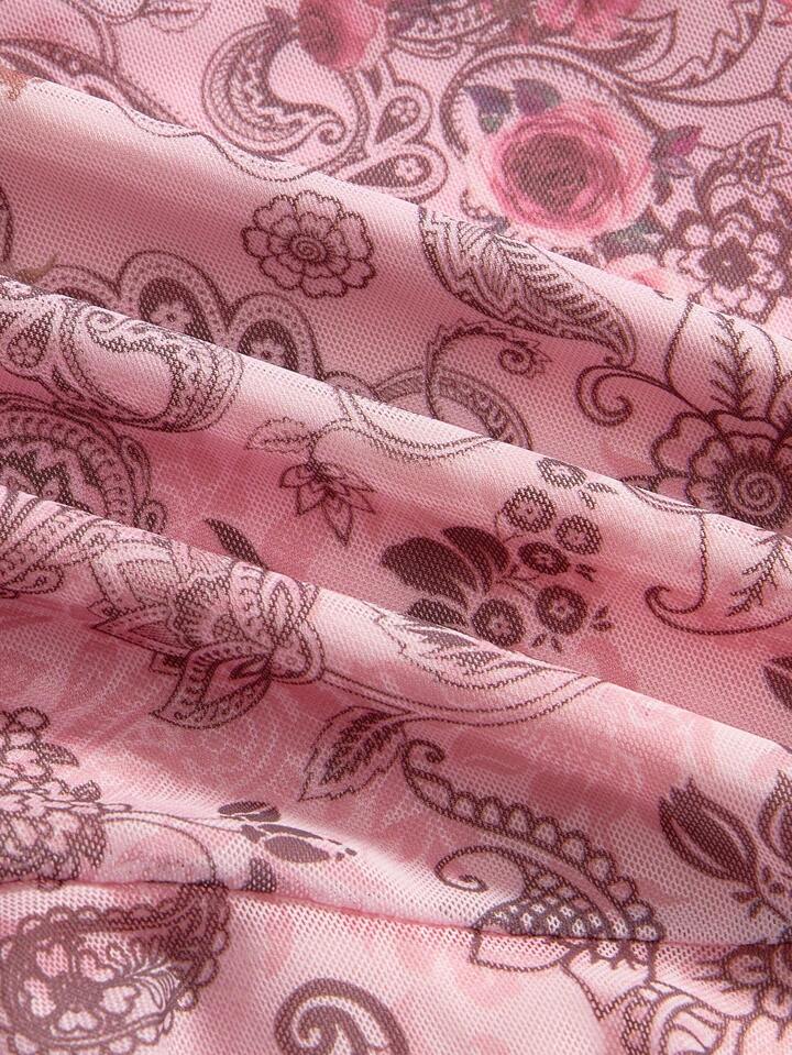 Women's Vintage Hippie Chic Ruffle Ribbon Lace Paisley Print Mini Dress