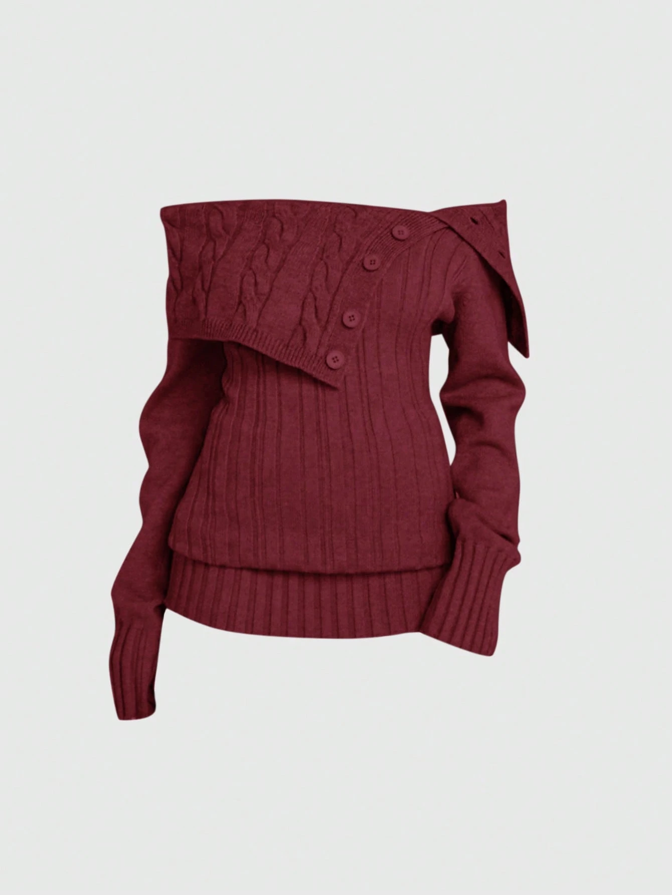 Y2K Style Women's Off Shoulder Turtleneck Twisted Hem Fitted Sweater