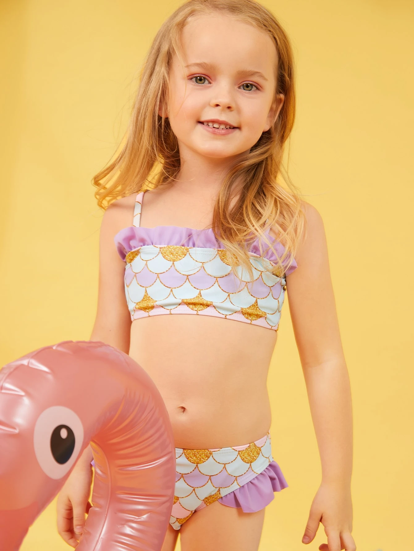 Young Girl Fish Scale Ruffle Bikini Set Summer Beach