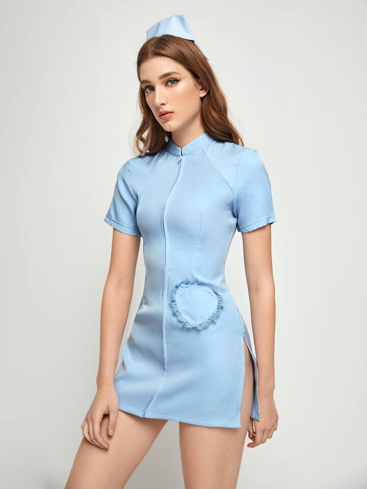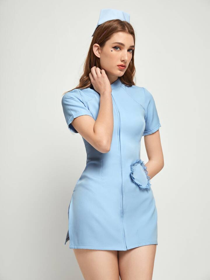 Zip Front Nurse Costume Dress With Hat